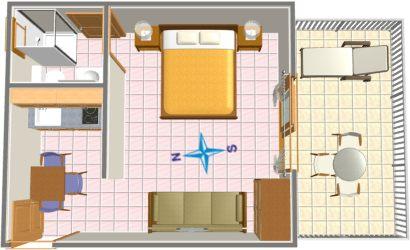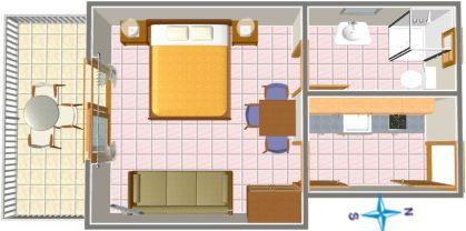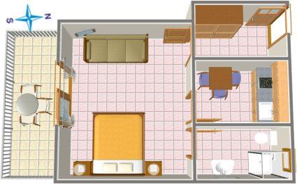 Apartmán pro dvě osoby se dvěma přistýlkami (25 m2)