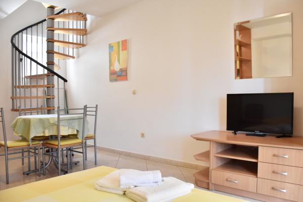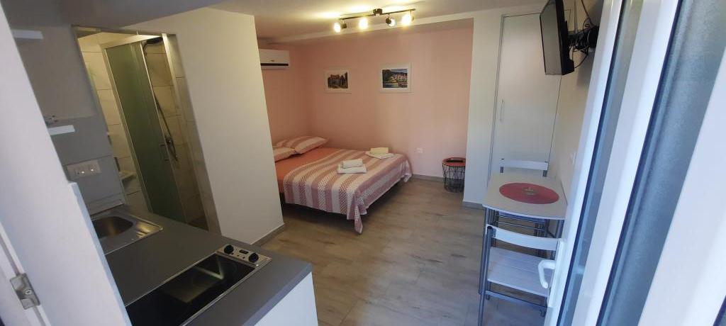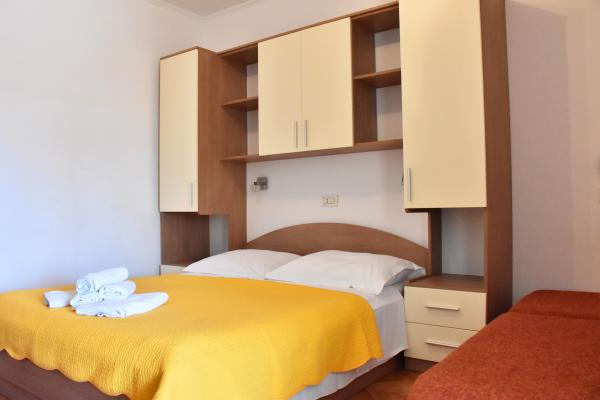 Apartmány BUŠELIĆ jsou plně a moderně vybavené apartmány. Nachází se pouhých 70 metrů od moře. Pláž je vyrobena z drobných dlažebních kamenů a je zdobena borovicemi, které vytvářejí příjemný odstín. Parkování je před domem a je zde možnost využití garáže. Spokojeni hosté a velké množství starých hostů zaručují kvalitu nabízenou hosty.