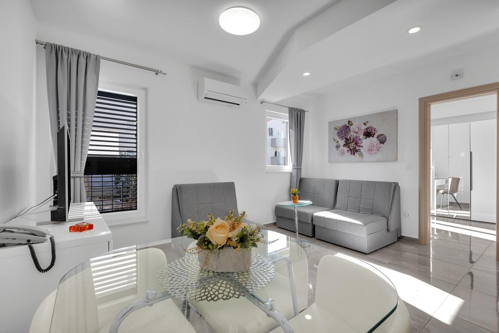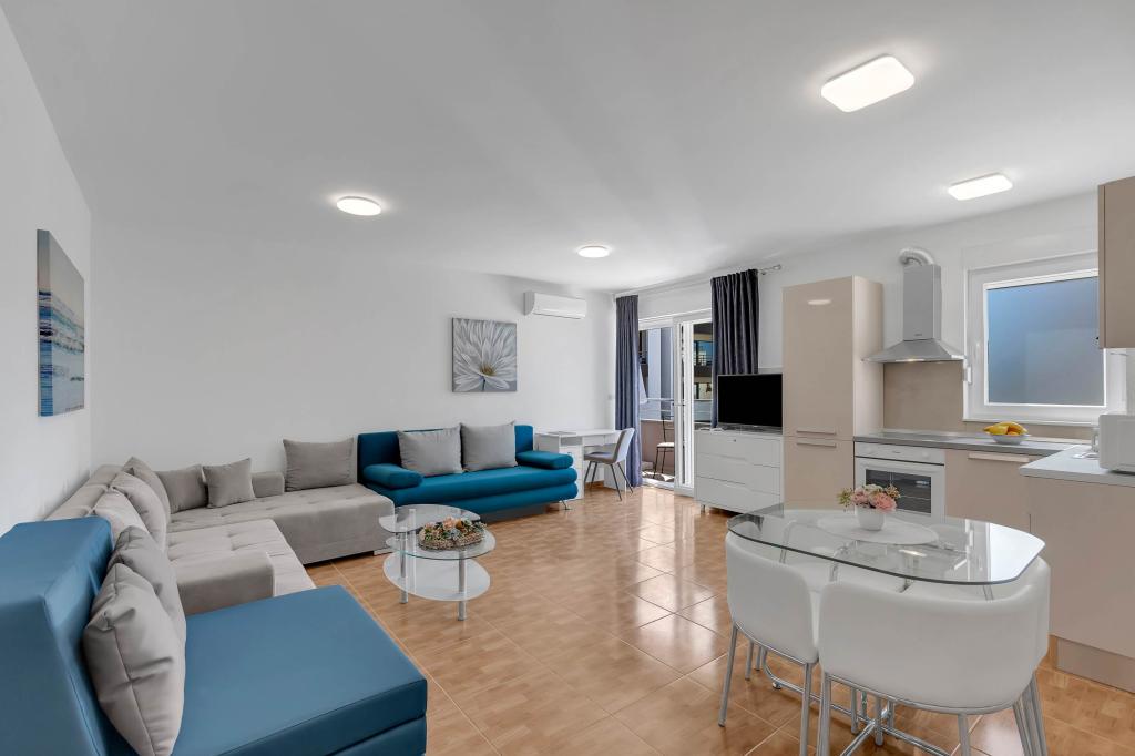 Plně a moderně vybavené exkluzivní a luxusní 4hvězdičkové apartmány v Tučepi u moře (NOVOSTAVBA). Objekt se nachází 5 minut chůze od centra a 2 minuty chůze od pláže (100 m). Kromě plně vybaveného objektu je k dispozici garáž, výtah a terasa ke každému apartmánu. Cena apartmánu začíná od 79 € za den v závislosti na počtu osob a časovém období (počet nocí). Pobytová taxa je zahrnuta v ceně.