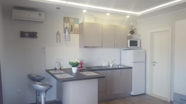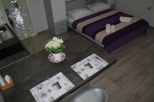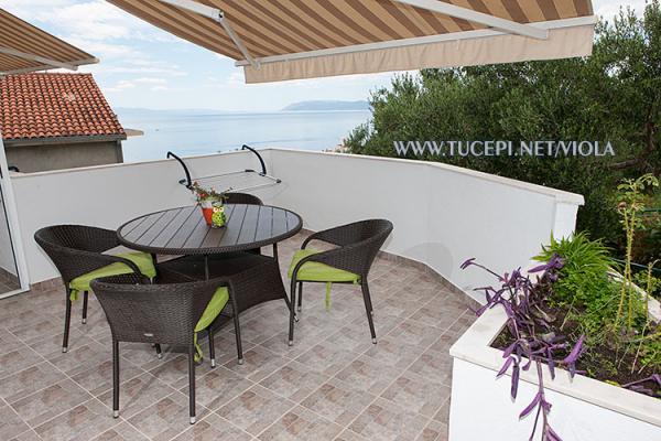 Kompletně a moderně vybavené apartmány v klidné části města Tucepi, 300 m od moře s výhledem na moře. Vzdálenost od centra města 10 minut chůze, pláž 5 minut chůze, vodní sporty a sportoviště Slatina 10 minut. Každý apartmán má vlastní vstupní halu a sdílí společný dvorek s parkovištěm. Hosté mohou využít příplatek; parkoviště, gril a Wi-Fi.