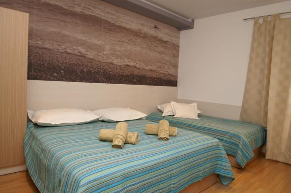 Naše apartmány se nacházejí v Tučepi, ve druhém a třetím patře rodinného domu, v blízkosti pláže (100 m), obchodů (50 m), sportovních hřišť (300 m), mnoha restaurací a centra města (800 m). Všechny apartmány jsou vybaveny klimatizací, TV, bezplatným WiFi připojením, ručníky a ložním prádlem. Konají se pravidelně. Větší apartmány (apt 5 a ap 6) mají myčku. Parkování je zajištěno v garáži, každý host má svůj klíč od garáže. Hosté mají k dispozici pračku (zdarma). Pláž u domu je upravená, písčitá. Podél celé pláže jsou borovice - přírodní stín. Promenáda podél pláže je uzavřena pro dopravu. Při delším pobytu (déle než 7 dní) nebo při zapadnutí do stávajících termínů poskytujeme slevu.