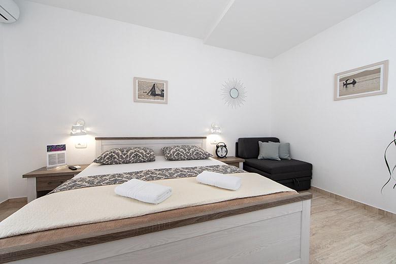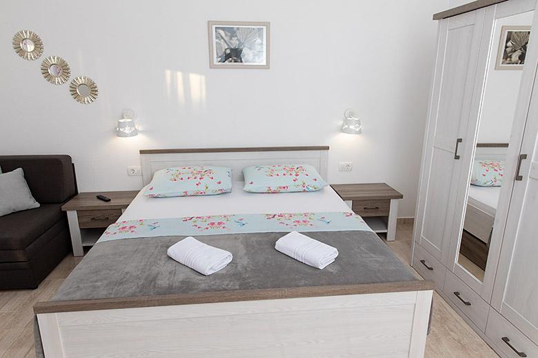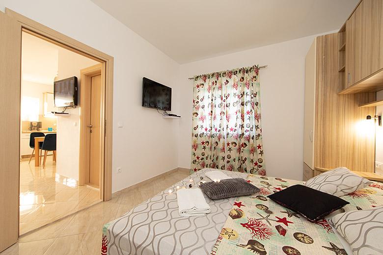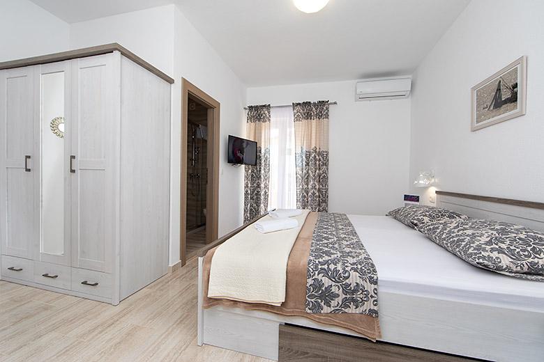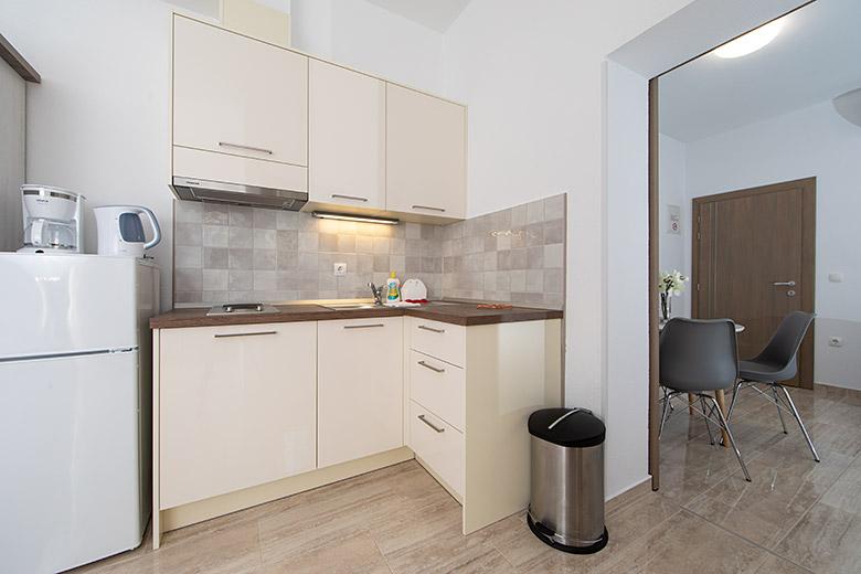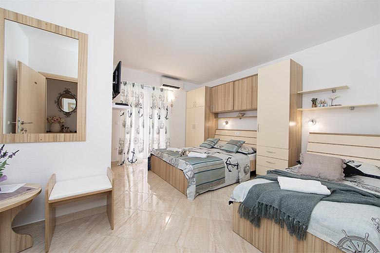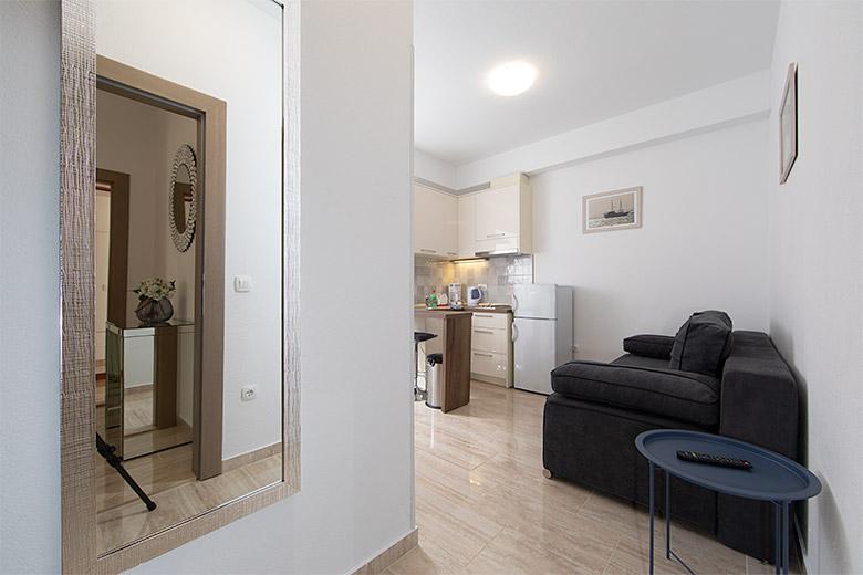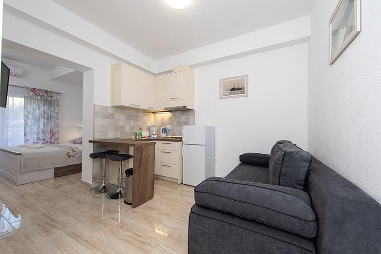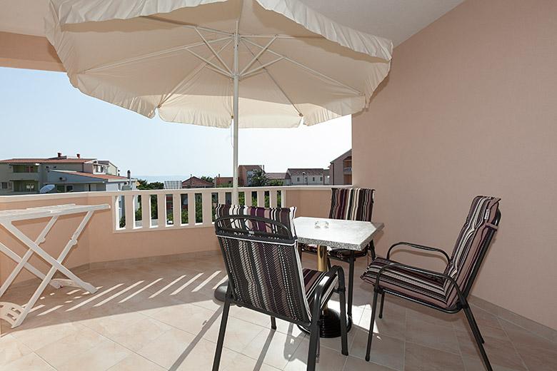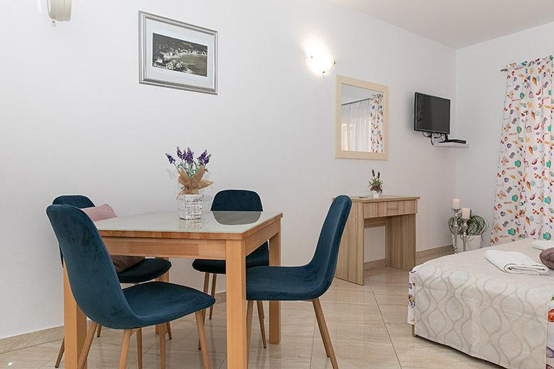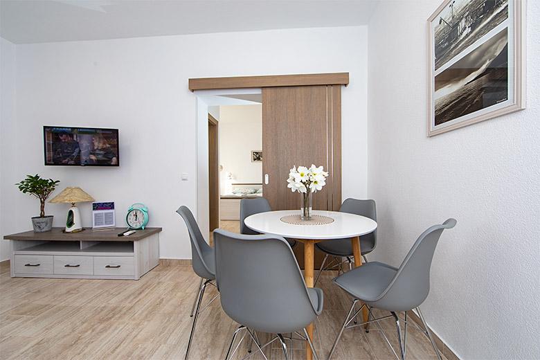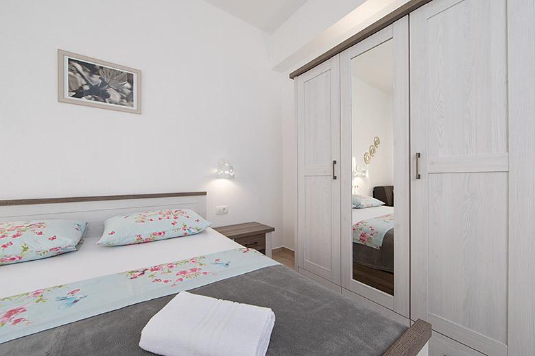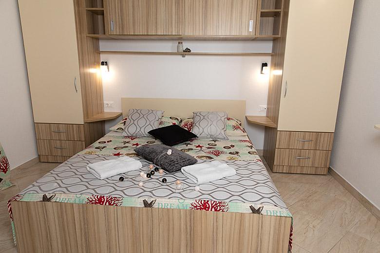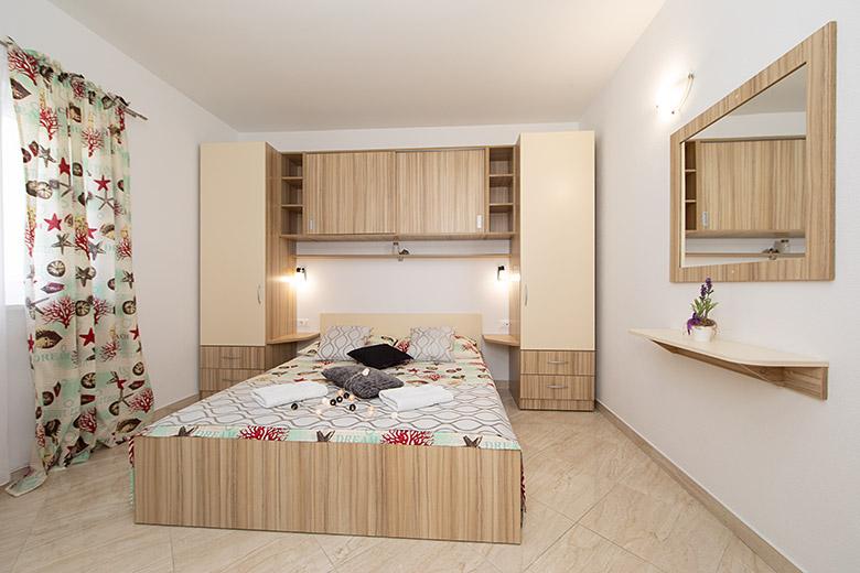 Pobytová taxa je v ceně.Majitelka je velmi přístupná a zdvořilá Byt je velmi čistý a voňavý, postele jsou pohodlné. Velká terasa s malou kuchyňkou, která obsahuje vše, co potřebujete k vaření V bytě je sušák na prádlo, fén, rychlovarná konvice, kávovar, na chodbě je šatna na další nezbytnosti. (toaletní papír, pytle na odpadky, prací prostředek, žehlička, žehlicí prkno,...) Byt je velmi blízko všeho, pekárna, trh, restaurace, centrum, pláž 50 m.. Před apartmánem je zajištěno bezplatné parkování Vřele všem doporučuji