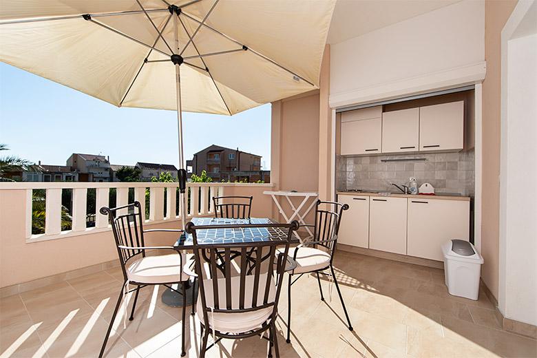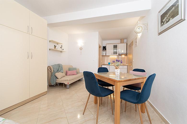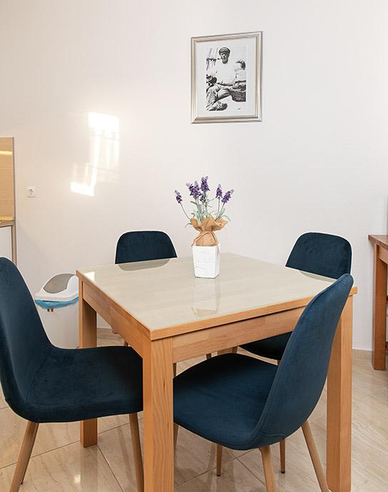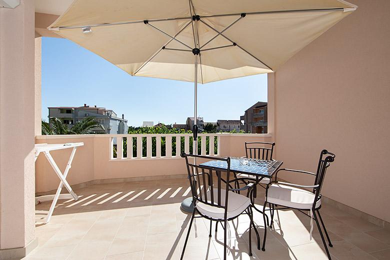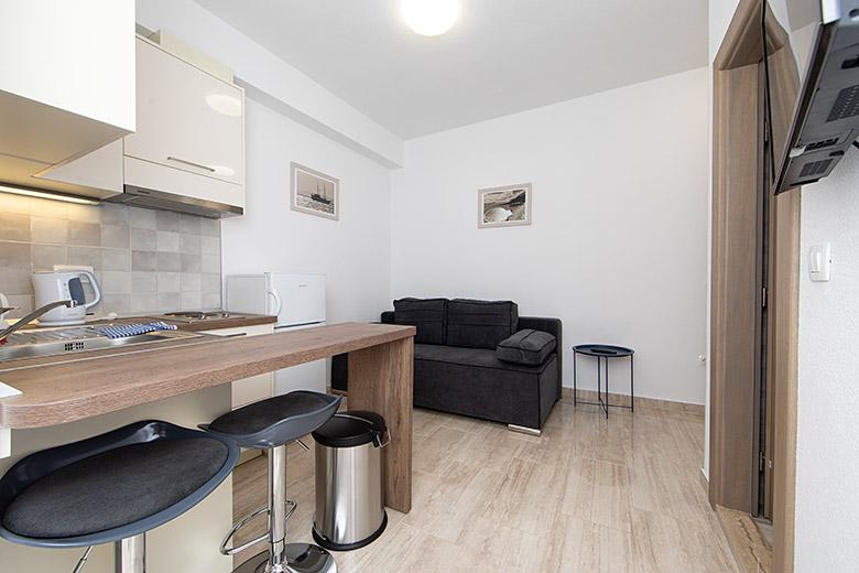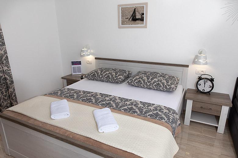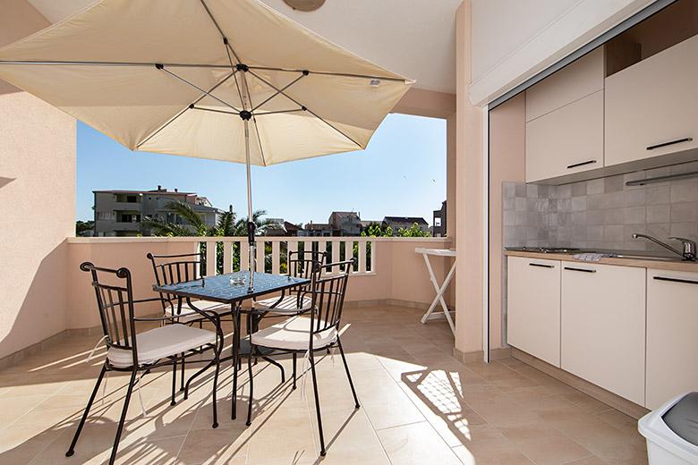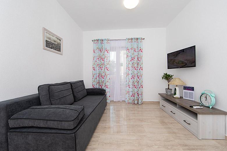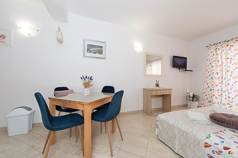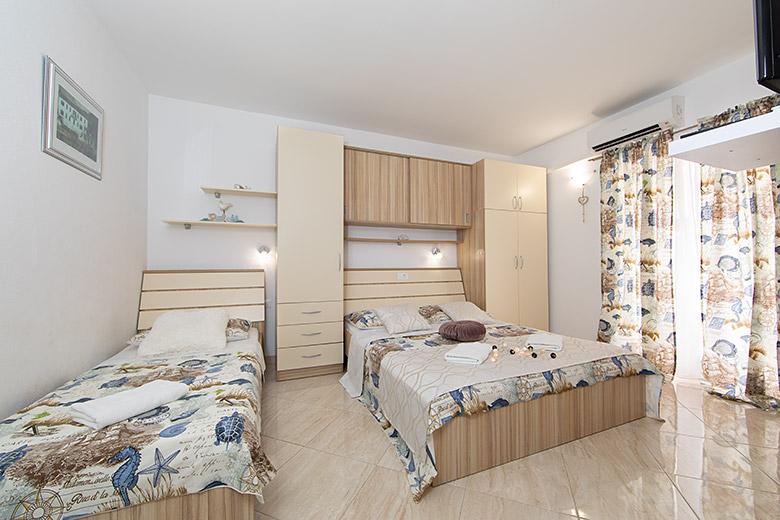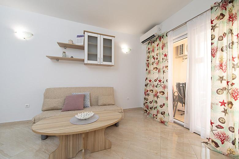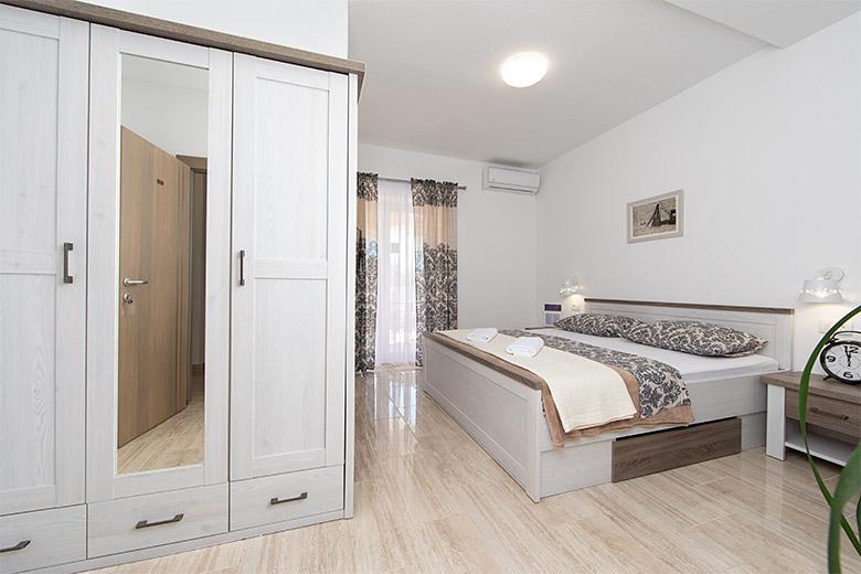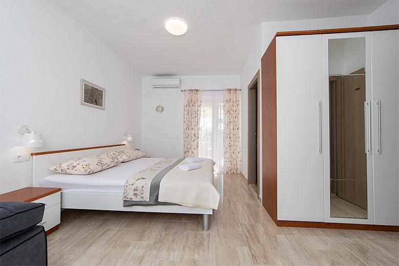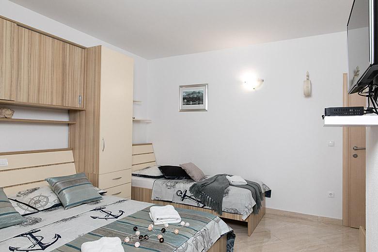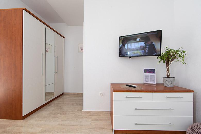 Pobytová taxa je v ceně.Majitelka je velmi přístupná a zdvořilá Byt je velmi čistý a voňavý, postele jsou pohodlné. Velká terasa s malou kuchyňkou, která obsahuje vše, co potřebujete k vaření V bytě je sušák na prádlo, fén, rychlovarná konvice, kávovar, na chodbě je šatna na další nezbytnosti. (toaletní papír, pytle na odpadky, prací prostředek, žehlička, žehlicí prkno,...) Byt je velmi blízko všeho, pekárna, trh, restaurace, centrum, pláž 50 m.. Před apartmánem je zajištěno bezplatné parkování Vřele všem doporučuji