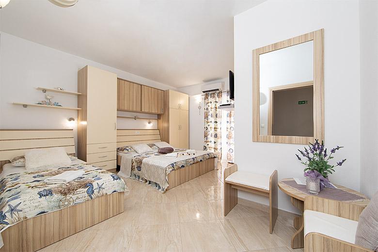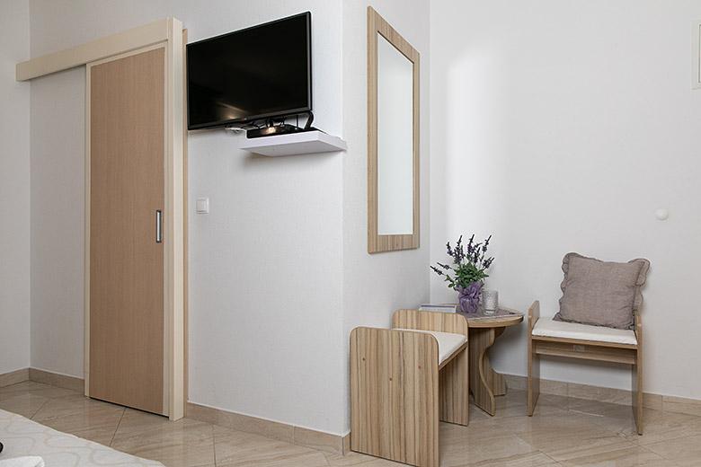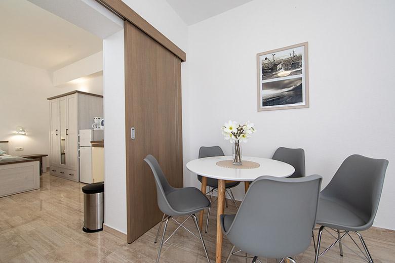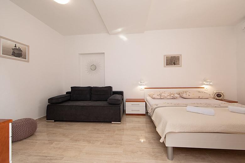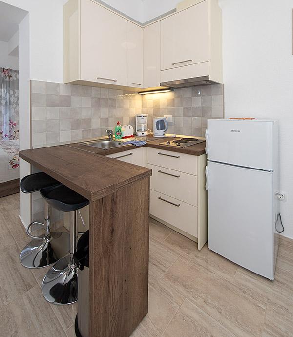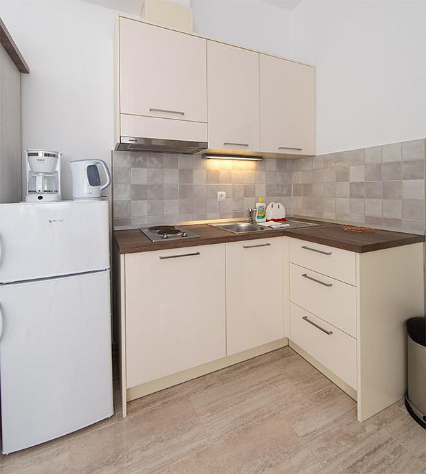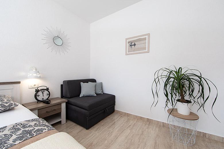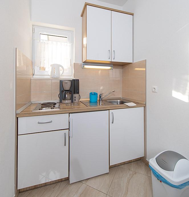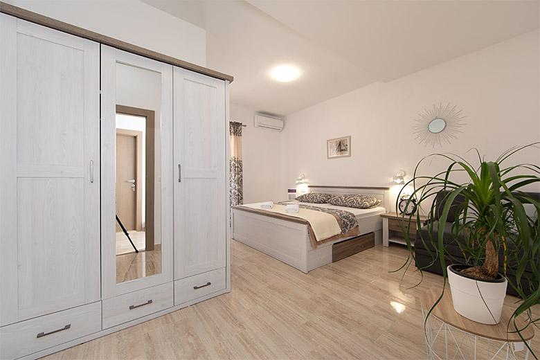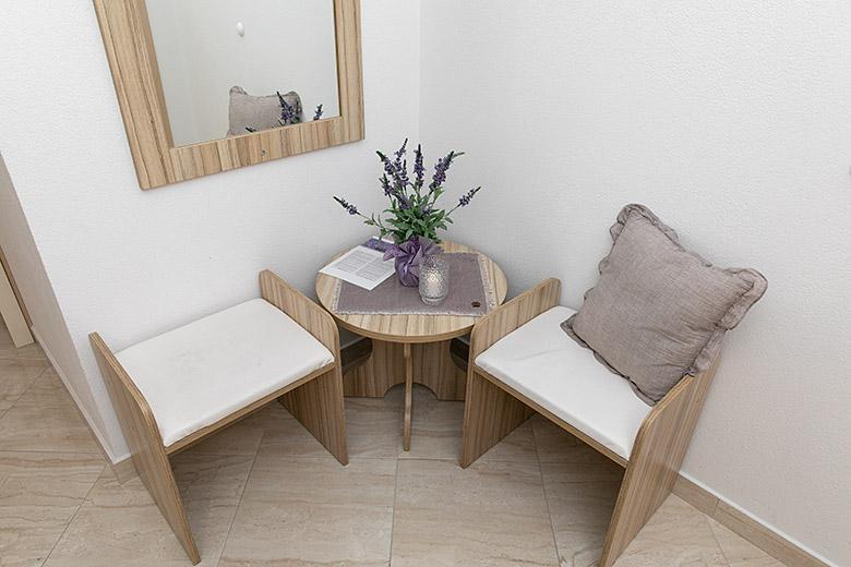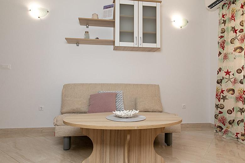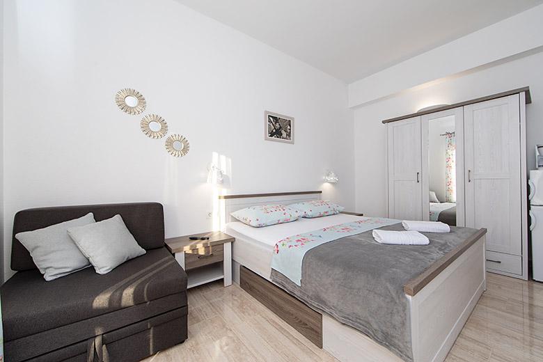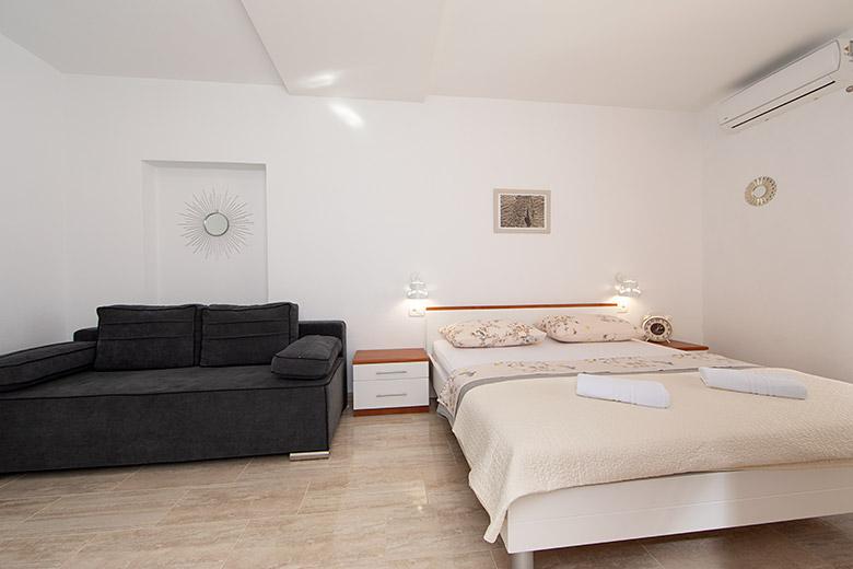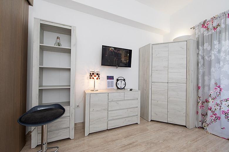 Pobytová taxa je v ceně.Majitelka je velmi přístupná a zdvořilá Byt je velmi čistý a voňavý, postele jsou pohodlné. Velká terasa s malou kuchyňkou, která obsahuje vše, co potřebujete k vaření V bytě je sušák na prádlo, fén, rychlovarná konvice, kávovar, na chodbě je šatna na další nezbytnosti. (toaletní papír, pytle na odpadky, prací prostředek, žehlička, žehlicí prkno,...) Byt je velmi blízko všeho, pekárna, trh, restaurace, centrum, pláž 50 m.. Před apartmánem je zajištěno bezplatné parkování Vřele všem doporučuji
