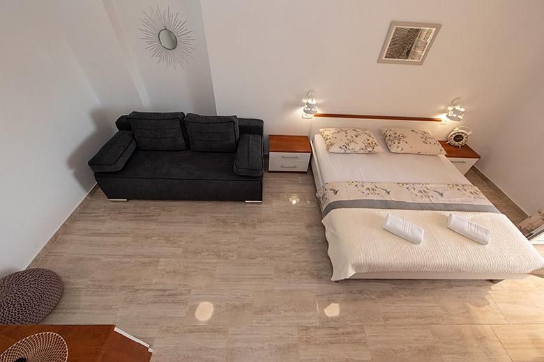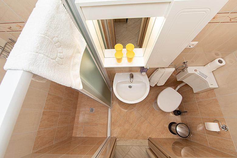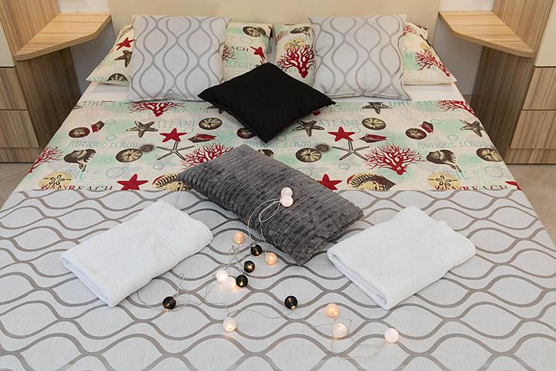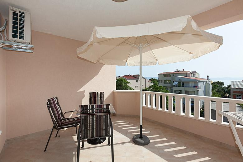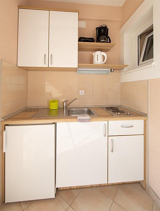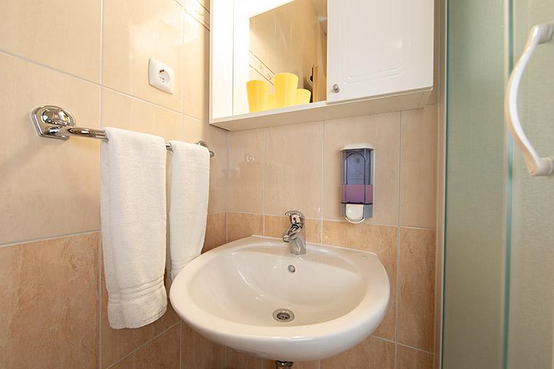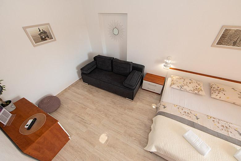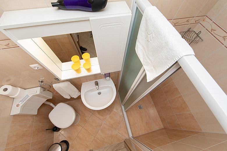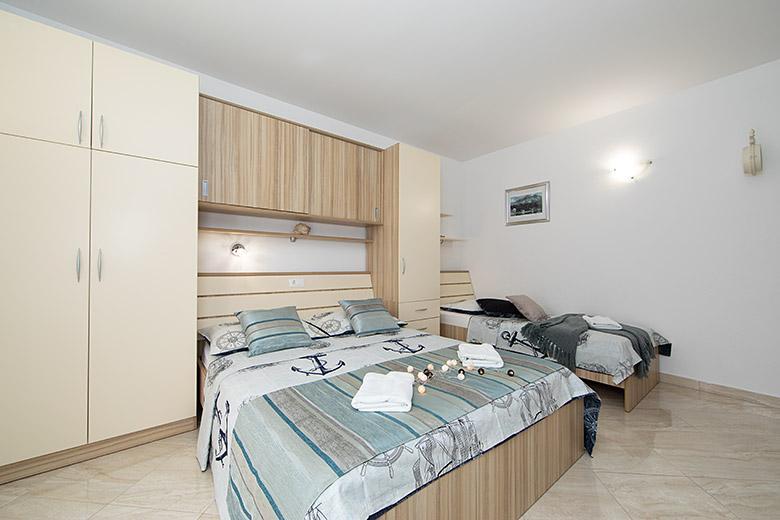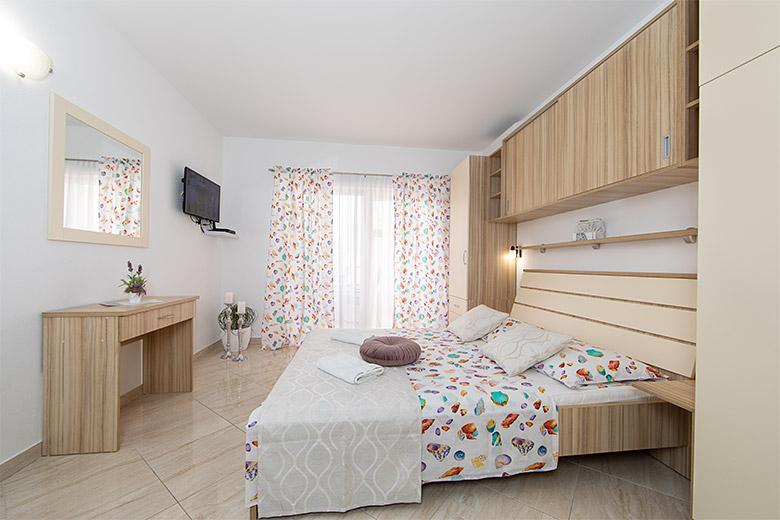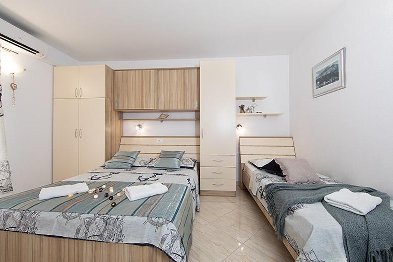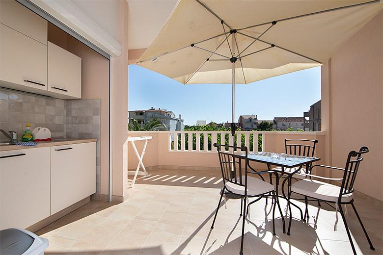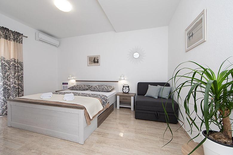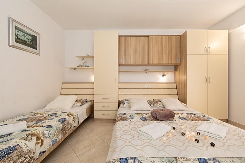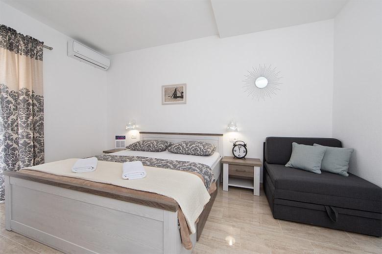 Pobytová taxa je v ceně.Majitelka je velmi přístupná a zdvořilá Byt je velmi čistý a voňavý, postele jsou pohodlné. Velká terasa s malou kuchyňkou, která obsahuje vše, co potřebujete k vaření V bytě je sušák na prádlo, fén, rychlovarná konvice, kávovar, na chodbě je šatna na další nezbytnosti. (toaletní papír, pytle na odpadky, prací prostředek, žehlička, žehlicí prkno,...) Byt je velmi blízko všeho, pekárna, trh, restaurace, centrum, pláž 50 m.. Před apartmánem je zajištěno bezplatné parkování Vřele všem doporučuji