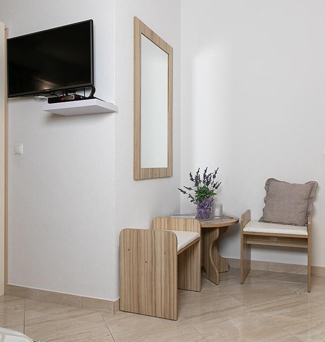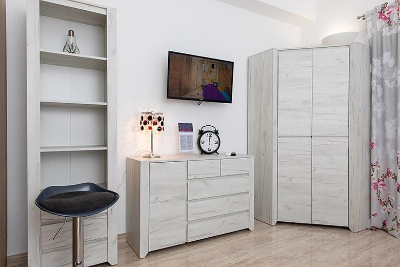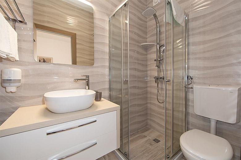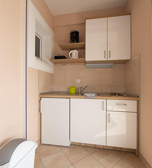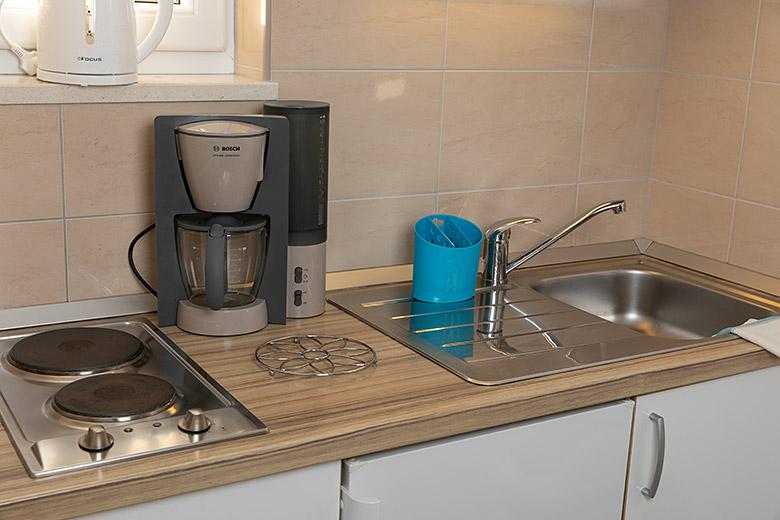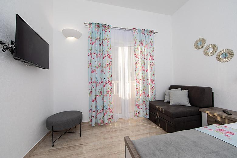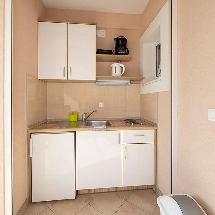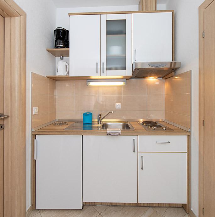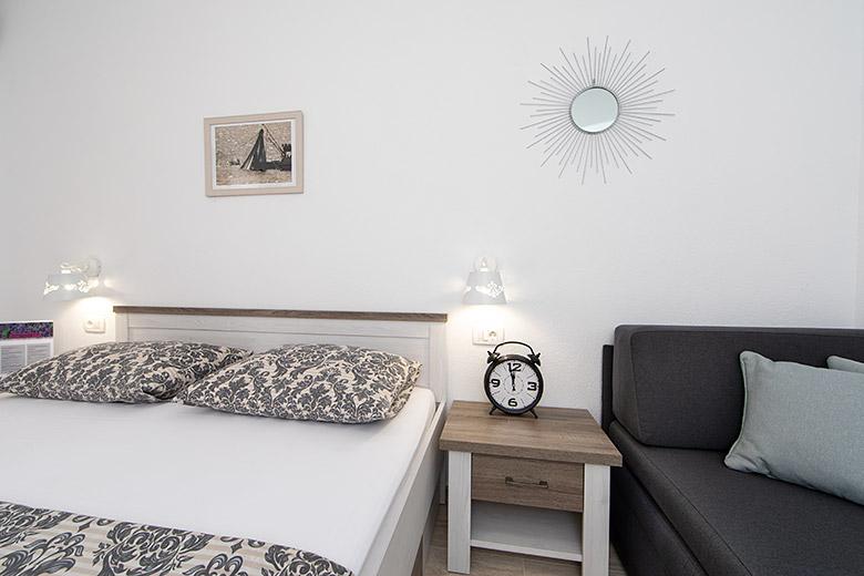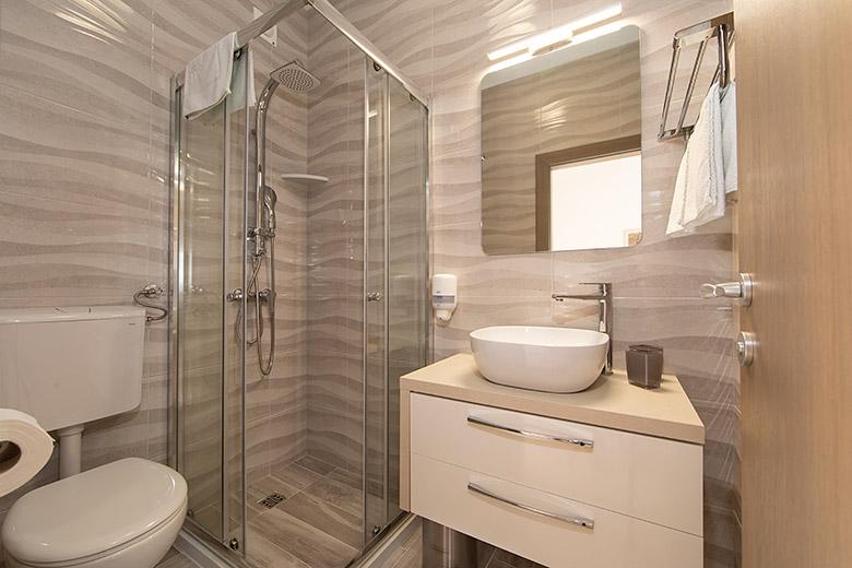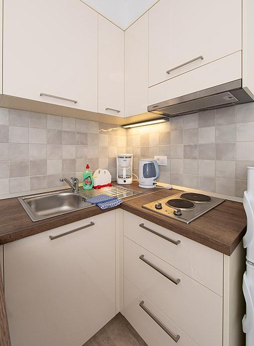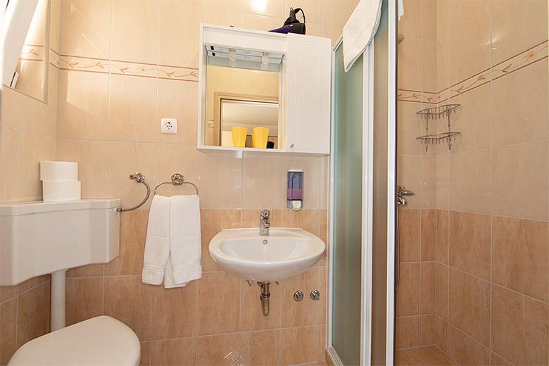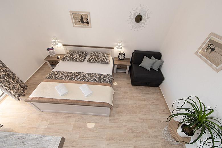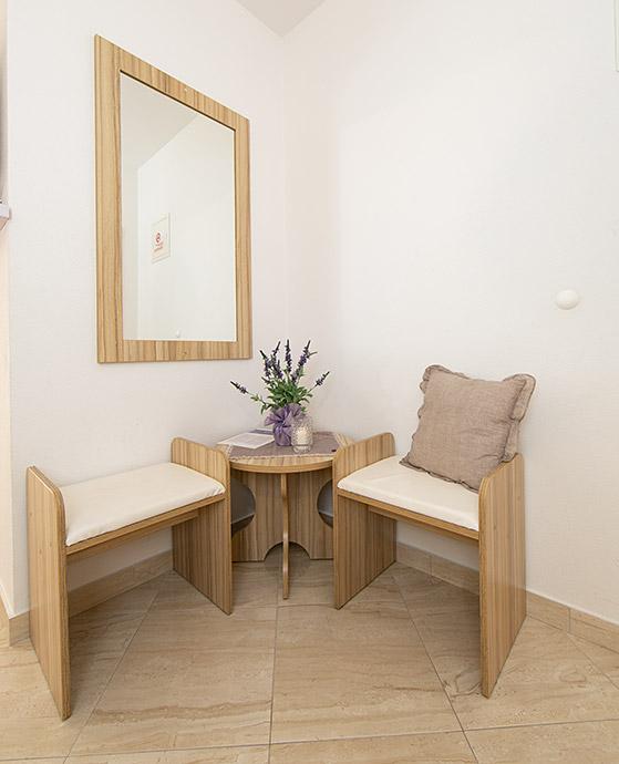 Pobytová taxa je v ceně.Majitelka je velmi přístupná a zdvořilá Byt je velmi čistý a voňavý, postele jsou pohodlné. Velká terasa s malou kuchyňkou, která obsahuje vše, co potřebujete k vaření V bytě je sušák na prádlo, fén, rychlovarná konvice, kávovar, na chodbě je šatna na další nezbytnosti. (toaletní papír, pytle na odpadky, prací prostředek, žehlička, žehlicí prkno,...) Byt je velmi blízko všeho, pekárna, trh, restaurace, centrum, pláž 50 m.. Před apartmánem je zajištěno bezplatné parkování Vřele všem doporučuji