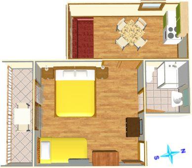 Apartmán pro čtyři osoby (50 m2)