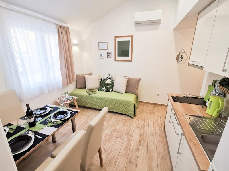 Čistý a uklizený. Všechno je skutečné, jako na obrázcích. Paní Zorica je příjemná a vstřícná. Pláž je blízko, ale byt má svůj vlastní klid, který jsme si užili.