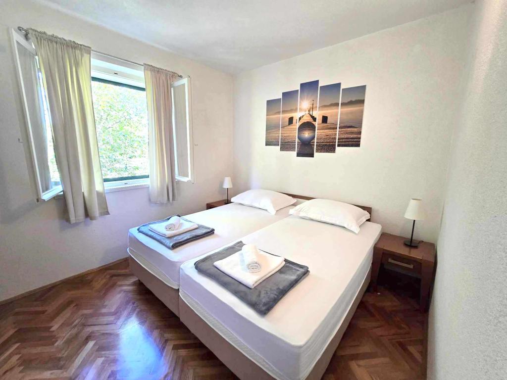 Kamenný dům, který je obklopen zahradou 350 m2, dvůr je celý oplocený. Dům se nachází 20 metrů od pláže. Skládá se ze dvou ložnic, obývacího pokoje s rozkládací pohovkou, kuchyně, terasy s venkovním nábytkem. Obývací pokoj a ložnice jsou klimatizovány. Hosté mají k dispozici kanoe pro 2 osoby, gril, parkoviště pro 2 auta. Kapacita celého domu je pro 7 osob. Celý dům a zahrada jsou určeny výhradně pro hosty.