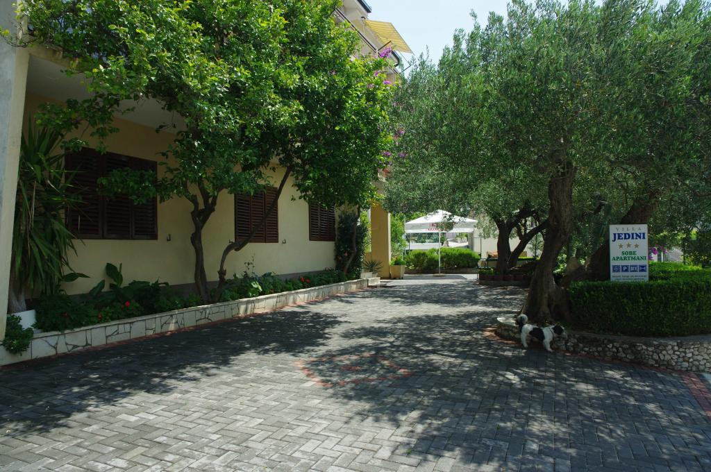 Rodinná vila Jedini se nachází v klidné části Tučepi nedaleko dlouhé pláže, která se táhne přírodního stínu borového lesa. Dům je ideální pro rodiny s dětmi z důvodu prostorného dvora a možnosti využití grilu. Každý apartmán má hlídané parkovací místo, klimatizaci, TV a Wi-Fi. Přátelští hostitelé s více než 40 lety zkušeností v cestovním ruchu se postarají o příjemný pobyt.