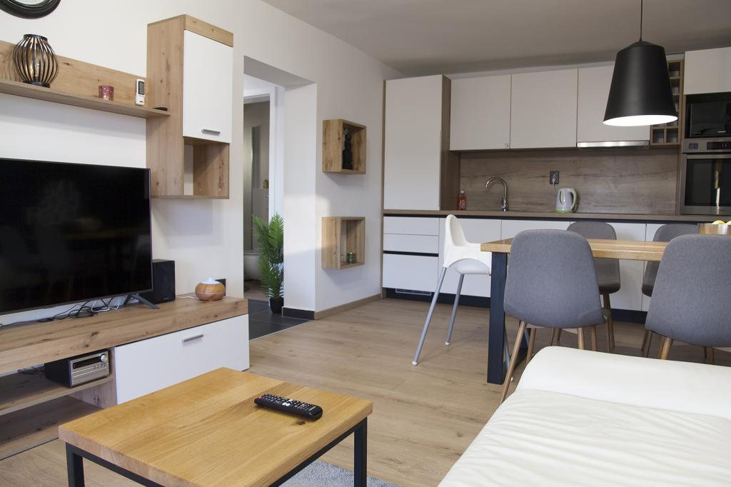 Obklopte se stylově v tomto mimořádném prostoru. Tato moderní 4hvězdičková vila se nachází na klidném kopci nad lázněmi Tuhelj a je z ní nádherný výhled do okolí. Byt v přízemí (38 m2) má vše, co potřebujete pro perfektní dovolenou a ještě více. Plně vybavená kuchyně s troubou, myčkou a mikrovlnkou s veškerým příslušenstvím. Televize s více než 100 programy a Netflix. Venkovní terasa s dřevěnou pergolou, grilem a krásným výhledem vás pokaždé uvolní... Apartmán v patře je dvoupodlažní (70m2) a má 3 ložnice, velký obývací pokoj s plně vybavenou kuchyní, saunu, koupelna a toaleta. TV se 100+ programy, Netflix, konzole PS4, BT rádio atd... Krytá terasa nabízí krásný výhled do okolí. Přístup pro hosty Naši hosté mají k dispozici soukromé parkoviště a garáž, prádelnu, venkovní terasu s grilem a umyvadlem, vířivku (květen-říjen), zahradní sprchu, saunu a mnoho dalšího...