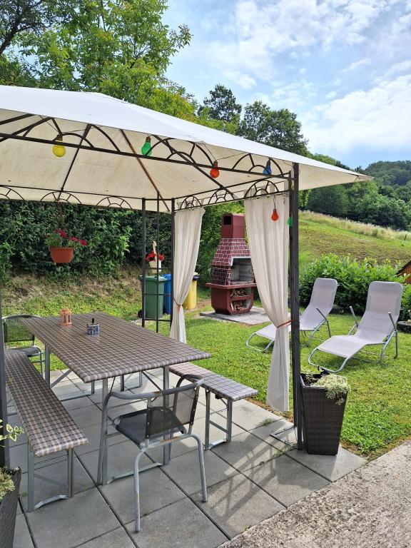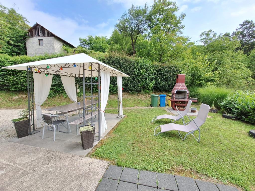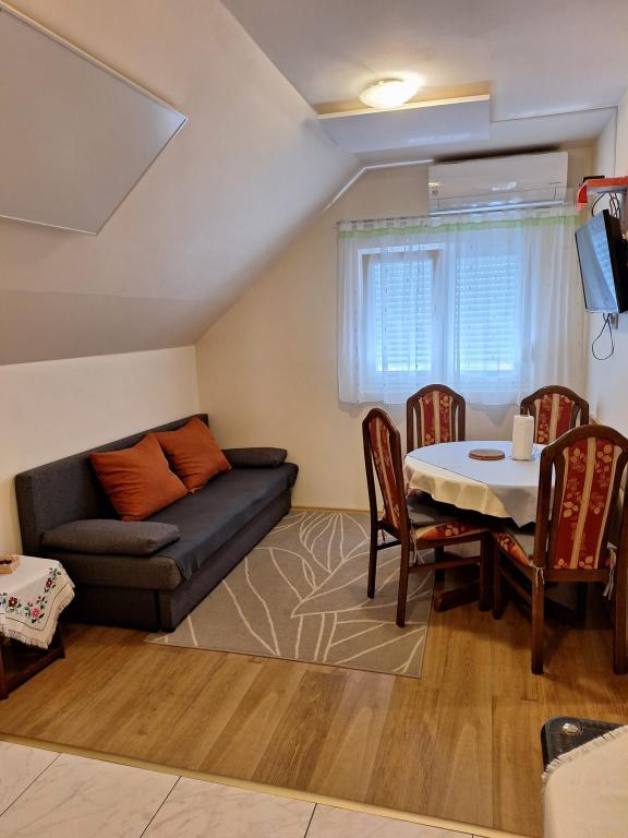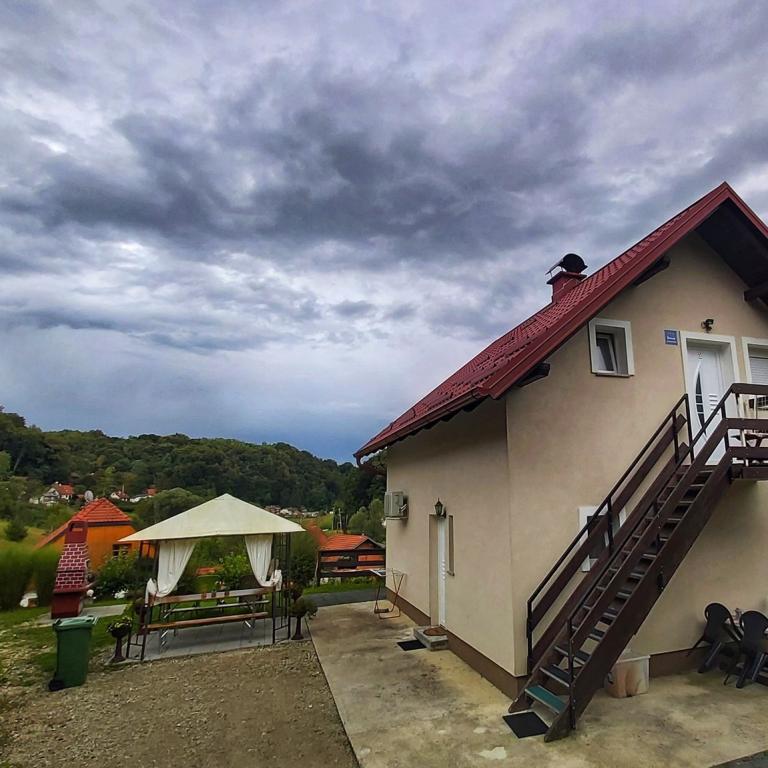 Dům se dvěma moderně vybavenými apartmány /přízemí a podkroví/ se nachází v chorvatském Zagorje. Je obklopen zelení, květinami a upravenou zahradou. Každá aplikace má svůj vlastní vchod a terasu a před domem je krytá markýza s posezením, lehátky a velkým grilem. Terasa nabízí výhled na krásnou přírodu, během dovolené vás nebude rušit hluk /protože hlavní silnice je daleko a místní provoz je velmi slabý/, ale užijete si cvrlikání ptactva. Lázně Tuhelj jsou známé svým zdrojem termální, léčivé vody, a tak je vám celoročně k dispozici komplex s venkovními i vnitřními bazény, masážemi, saunami, sportovní a gastronomickou nabídkou. Apartmány jsou 1200 m od komplexu, 15 minut chůze. Poznejte krásy našeho regionu a gastronomickou nabídku a my vám poskytneme informace a pokusíme se vám zpříjemnit pobyt. Welcome drink v ceně.Fotky apartmánu si můžete prohlédnout na fb stránce - apartmány Huško Vítejte