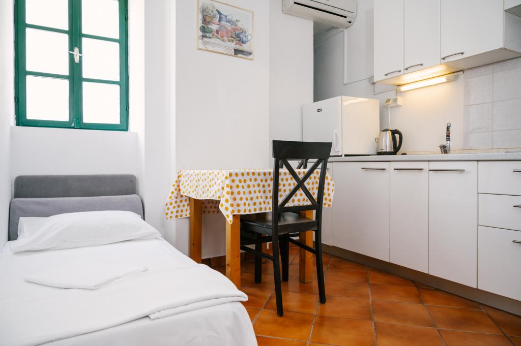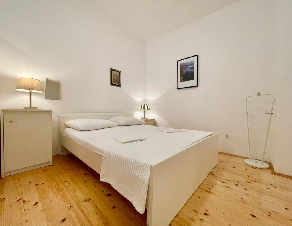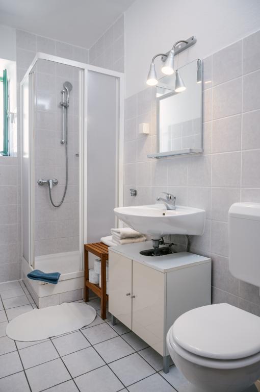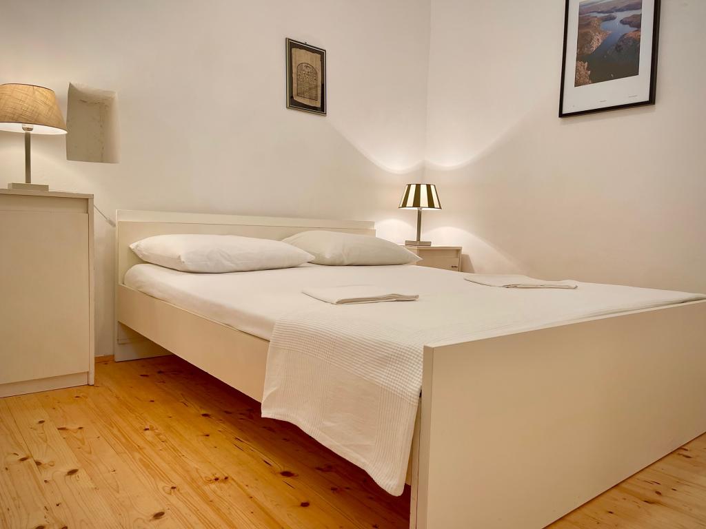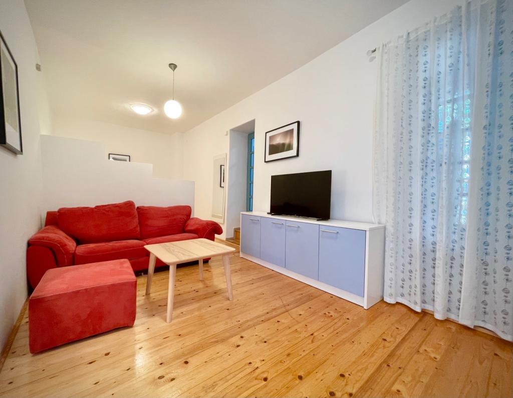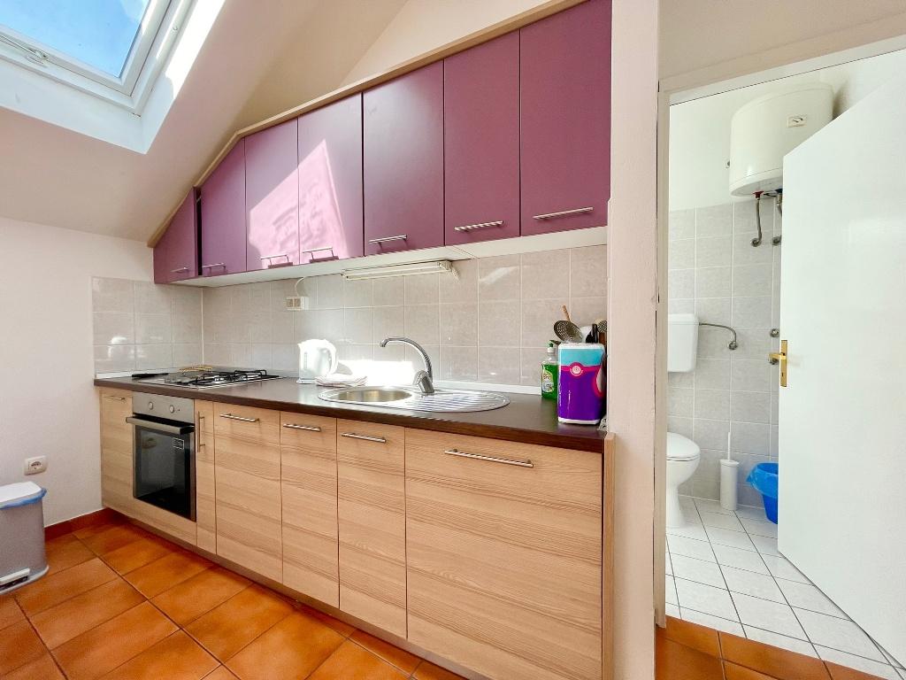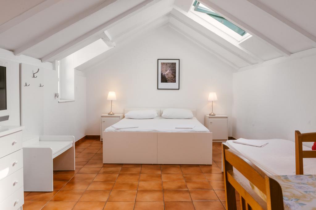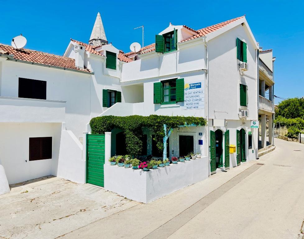 Moderní apartmány se nacházejí v prvním patře a druhém patře (horní patro) v domě v centru města, na prvním řádku na pláž, s výhledem na moře. Apartmány se skládají z obývacího pokoje s jídelnou a kuchyní v jednom prostoru, byt s balkonem s výhledem na moře, jedna ložnice s manželskou postelí, koupelna se sprchou / WC. Parkování ve veřejném prostoru v přední části domu. - Příplatek za domácí zvířata E5, 00 za den.