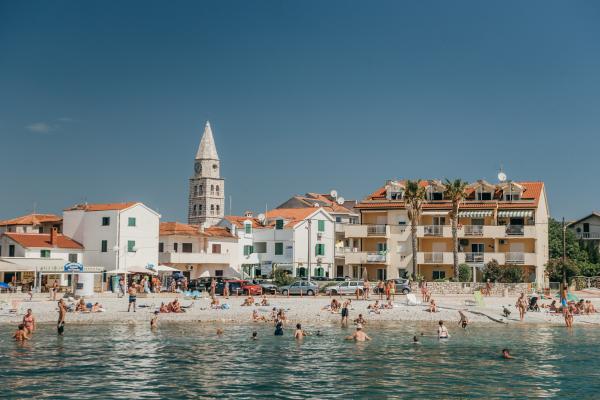 Ubytování jako na fotkách, všechno OK. Majitel domu je jeden super milý člověk. Umí se domluvit Anglicky, Slovensky, Česky, Chorvatsky. Parkování před domem, zmrzlina prkaticky hned pod domem, pizzerka hned vedla, 2x obchod do 3min peso. Plaz super, hned ve vodě máte velký skákací hrad. No prostě super.