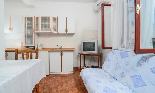 Tradiční dům, pod pobřežní silnici (dálnice), v klidném místě s dvoře (parkování) a zahradu, 3 minuty od pláže a 4 minuty od centra města. Plně vybavené apartmány se nacházejí v prvním patře, a každý z nich má malý balkon. Pláže se nacházejí na přibližně 200 - 400 m.