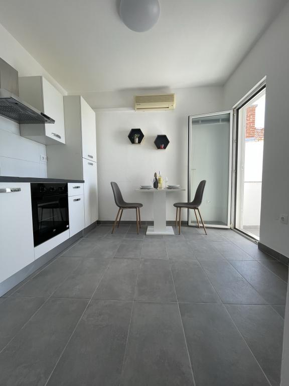 Plně vybavené a moderní apartmány, velkou terasou a výhledem na moře. Nábřeží. V blízkosti obchodu s potravinami, centrum, pláž, restaurace, pizzerie.