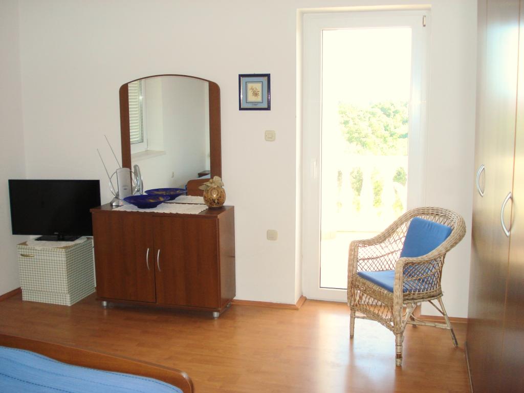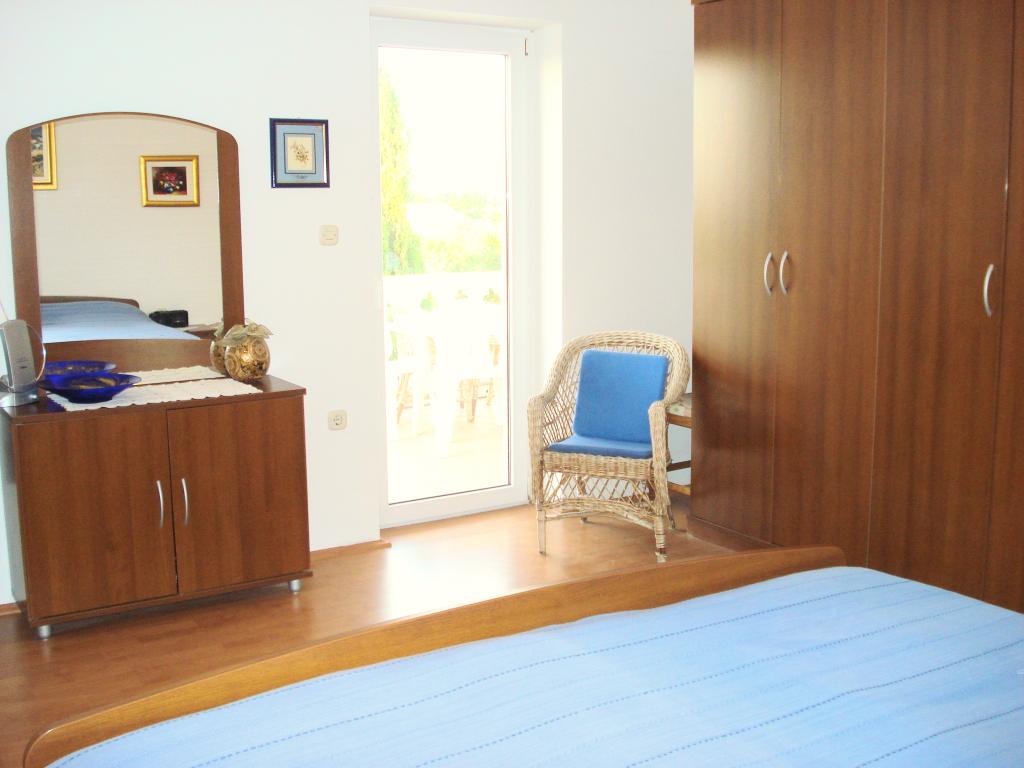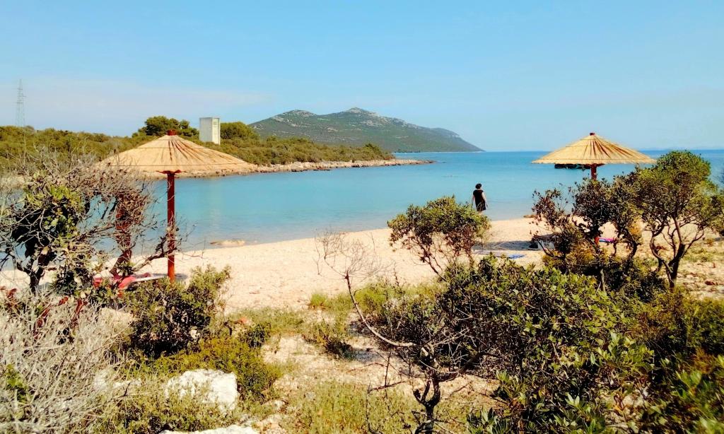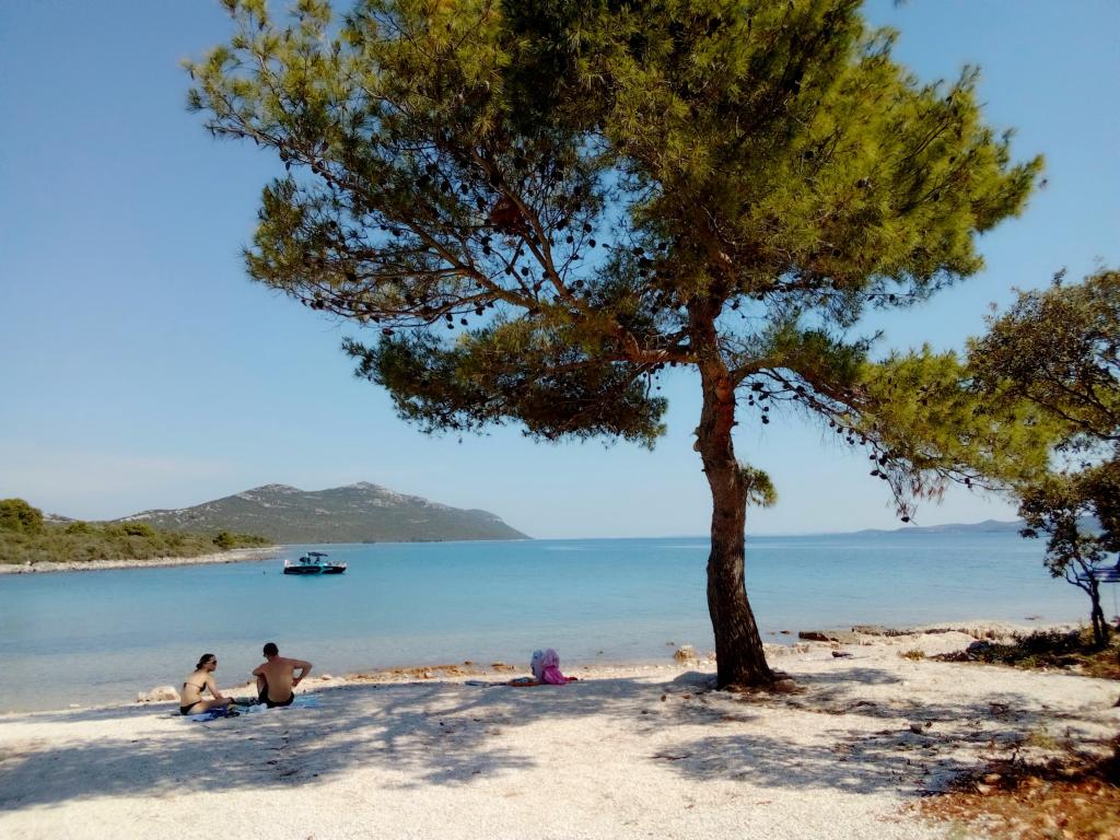 Byt se nachází v prvním patře rodinného domu v klidné části Ugljanu, v blízkosti je olivový háj 8 min. pěšky Všechny pláže jsou dostupné autem. K dispozici je kuchyně a obývací pokoj/ložnice s velkou pohodlnou postelí 160 cm pro 2 osoby; ložnice s lůžkem 180 cm z obou pokojů je vstup na balkón, malý jednolůžkový pokoj s lůžkem 90 cm pro 1 osobu az tohoto pokoje je výstup na menší balkon. Má další přenosnou troubu a el. gril, takže můžete vařit a péct venku na balkóně; umyvadlo, sprchový kout 90 cm, WC. Dům je obklopen krásnou zahradou, kde se můžete ubytovat. Domácí zvířata jsou povolena a preferována. Vhodné místo pro milovníky přírody, romantiky, sportovní typy, rodiny, které mají rády klidnou dovolenou. V blízkosti známého města Zadar, které byste rozhodně měli navštívit. Trajekt a osobní loď jezdí každý den, téměř každou hodinu, cesta trvá asi 20 minut. Možné výlety z Ugljanu jsou na Kornati a Dugi otok. Vítejte u nás!