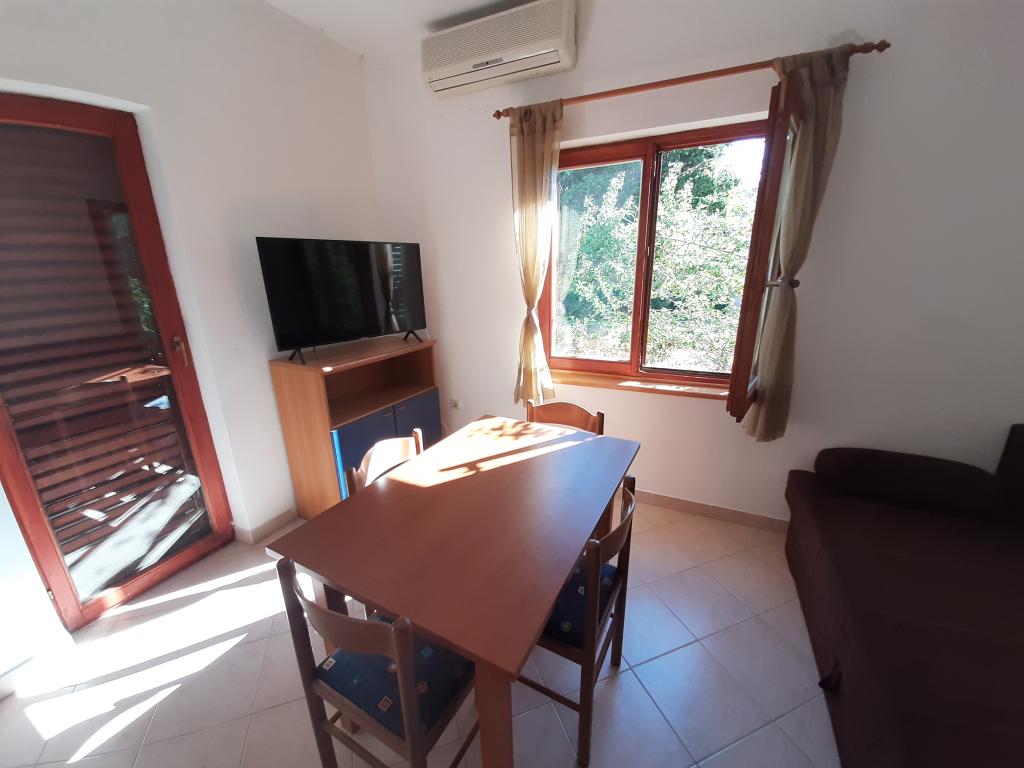 Apartmán 4 1 v přízemí domu s nádvořím, 50m od moře. Skládá se ze 2 ložnic s manželskou postelí a obývacího pokoje s rozkládací pohovkou. Zahrnuje klimatizaci, TV, WIFI.