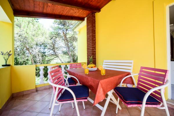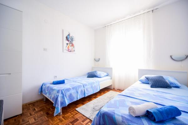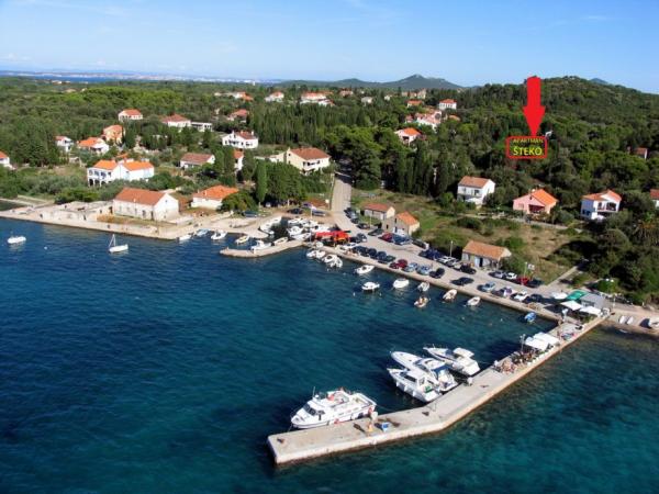 Byt STEKO se nachází v malé rybářské vesnici Muline na Ugljan. V bytě se nachází přes patře domu (70m2) s velkou terasou (20m2), na které si hosté sami se samostatným vchodem. Byt má dvě ložnice, obývací boravaksa satelitní TV, klimatizace, plně dodané kuchyň pro 6 osob, předsíně a koupelny. Použití venkovní krby (gril) a venkovní sprchou. Dům se nachází v klidné části města, obklopen stínu borového lesa, 200 metrů od pláže na severní straně. Písečná pláž se nachází v chráněné zátoce je ideální pro děti, se nachází 300 metrů od jihu. Parkování ve vlastním uzavřeném dvoře