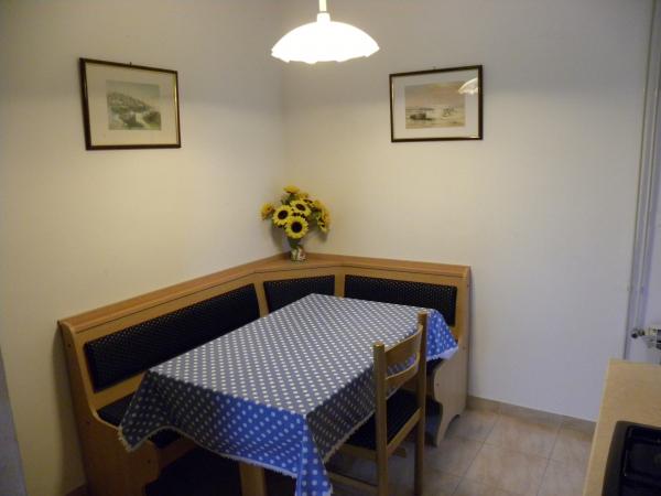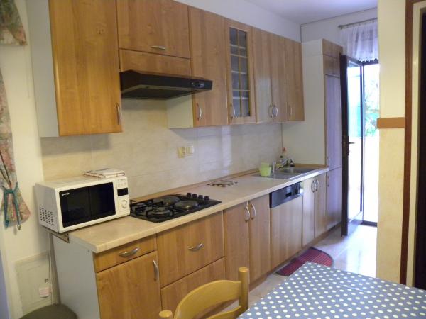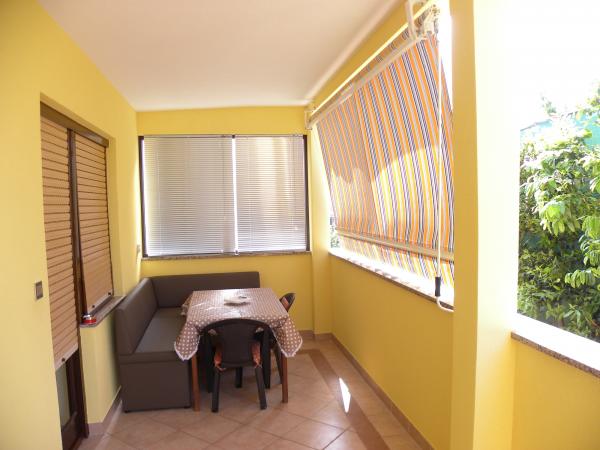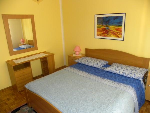 Umag, pouhých 15 minut od hranic se Slovinskem. Je to první turistické místo v Chorvatsku, na cestě ze západní Evropy. Apartmán EMI se nachází v nové vesnici Komunela, u vchodu do Umagu. Dům se nachází v přízemí rodinného domu, obklopen zelení, s velkou terasou, kde můžete zůstat celý den. Nábytek v bytě je moderního typu, a kuchyně s jídelnou a pokoje jsou moderně vybaveny (plynový sporák, velká lednice s mrazákem, mikrovlnná trouba, myčka). Obývací pokoj je moderně zařízený. Velká rohová pohovka, kterou lze v případě potřeby přeměnit na postel, s LED osvětlením, velkou Smart TV s pozemními a satelitními programy. Wi-Fi router pro zesílení internetového signálu. Satelitní rádio. LED osvětlení. Ve stejném pokoji je klimatizace. Cena pronájmu je 5 € / den. Na terase je hranatá lavice a stůl pro 6 osob. Hned vedle bytu je kryté parkoviště. Parkování a neomezený internet jsou zdarma