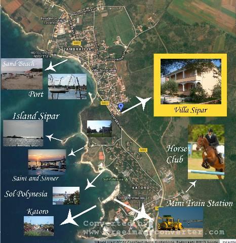 Pronajmu byt v 1. patře vily Sipar v Zambratiji, v klidné lokalitě, poslední dům v řadě s oploceným borovým hájem na parkování a hraní. Byt je nově zařízený, čistý a funkční. Skládá se ze vstupní haly, ložnice s manželskou postelí, plně vybavené mini kuchyně, obývacího pokoje, vlastní koupelny a terasy. Velkou pozornost věnujeme spokojenosti hostů. Možnost využití vlastního stolu na dvoře a využití grilu. Nevhodné pro mladé skupiny pro noční setkání. Pláže jsou vzdálené 300 až 500 m, dle přání hostů /štěrk, písek nebo beton v Turistickém resortu Katoro/ V blízkosti objektu je nově vybudovaná otevřená herna pro děti. K turistickému vláčku, který spojuje Zambratija s Umagem, je to asi 500 m.