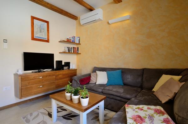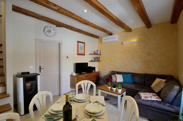Pobytová taxa je v ceně.Z vedlejší městské silnice se promění v dvorek sdílený se sousedy. K dispozici je soukromé parkoviště pro dvě auta a stůl s lavicemi. Vnější schodiště s malým balkonem vede do prvního patra, kde je kuchyň s obývacím pokojem, jedna ložnice s manželskou postelí a společné WC. Vnitřní schodiště vede do vysokého podkroví, kde je prostorná koupelna a druhá ložnice s manželskou postelí. V této místnosti je možné oddělit postele a děti to zbožňují! Ložní prádlo a ručníky jsou k dispozici. K vybavení patří wifi, satelitní TV, klimatizace na každém patře. Kuchyň je plně vybavena (elektrický sporák, trouba, lednice s mrazákem, myčka, nádobí).