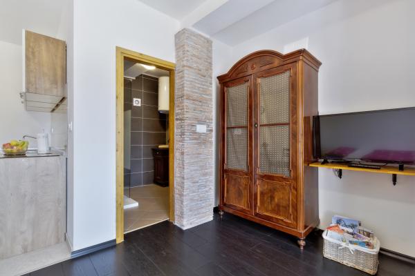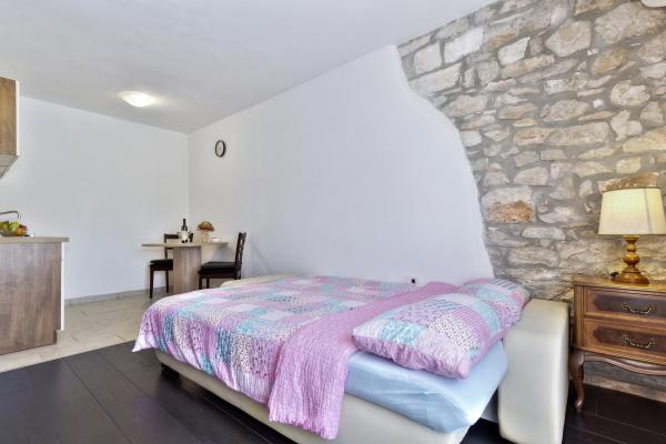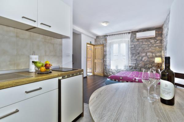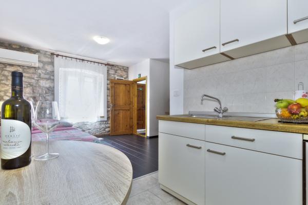 Nové, kompletně zrekonstruované apartmány v istrijském stylu. Každá jednotka je vybavena vlastním sociálním zařízením, plně vybavenou kuchyní, klimatizací a terasou. Každá jednotka má LCD televize se satelitním příjmem, a starožitný dřevěný nábytek. Koupelny jsou vybaveny sprchovým koutem, teplou vodou, bezplatnými toaletními potřebami a ručníky. Free Wi-Fi je k dispozici v celém objektu. Apartmány se nachází 30 metrů od supermarketu, 200m od hlavní písečné pláže, 500m od tenisového stadionu Central, 700m od trhu a starého města. Parkování je v areálu hotelu a je zdarma. Domácí mazlíčci jsou vítáni a jejich pobyt je zdarma. Příchod dítěte je možné až 6 let věku vzhledem k velikosti postele. Pobyt pro děti je zdarma.