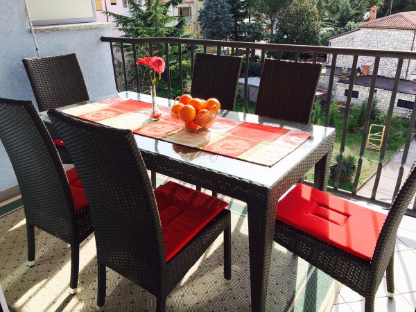 Apartmány Mirella 4 se nacházejí v nově postavené rezidenci Lavender s výhledem na moře a krásným výhledem na západ slunce. K moři a krásné písečné pláži je jen 150 metrů. Obchody, pekařství a restaurace na 200 metrů. Do centra Umagu 3 km. Podél moře je promenáda až do centra Umagu a možností je doprava turistickým vlakem. Apartmány jsou klimatizované a plně vybavené všemi spotřebiči. Koupelna s masážní sprchou, pračkou, fénem, žehličkou. Kuchyň s myčkou, mikrovlnnou troubou, kávovarem, rychlovarnou konvicí, velkou lednicí s mrazákem a vše ostatní, aby se host cítil jako doma. K dispozici je bezplatné připojení na internet a hlídané parkoviště. Cena zahrnuje použití bazénu, lehátek, sprchy, dvoumístných, stolů a židlí v kryté části terasy u bazénu. Děkujeme, že jste si vybrali Apartmány Mirella, doufám, že na oplátku uspokojíme vaše přání během vašeho pobytu v našich apartmánech. Naším cílem je vaše spokojenost a doporučení. Vážení hosté, vítejte v Apartments Mirella!
