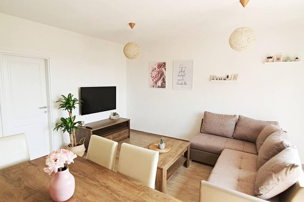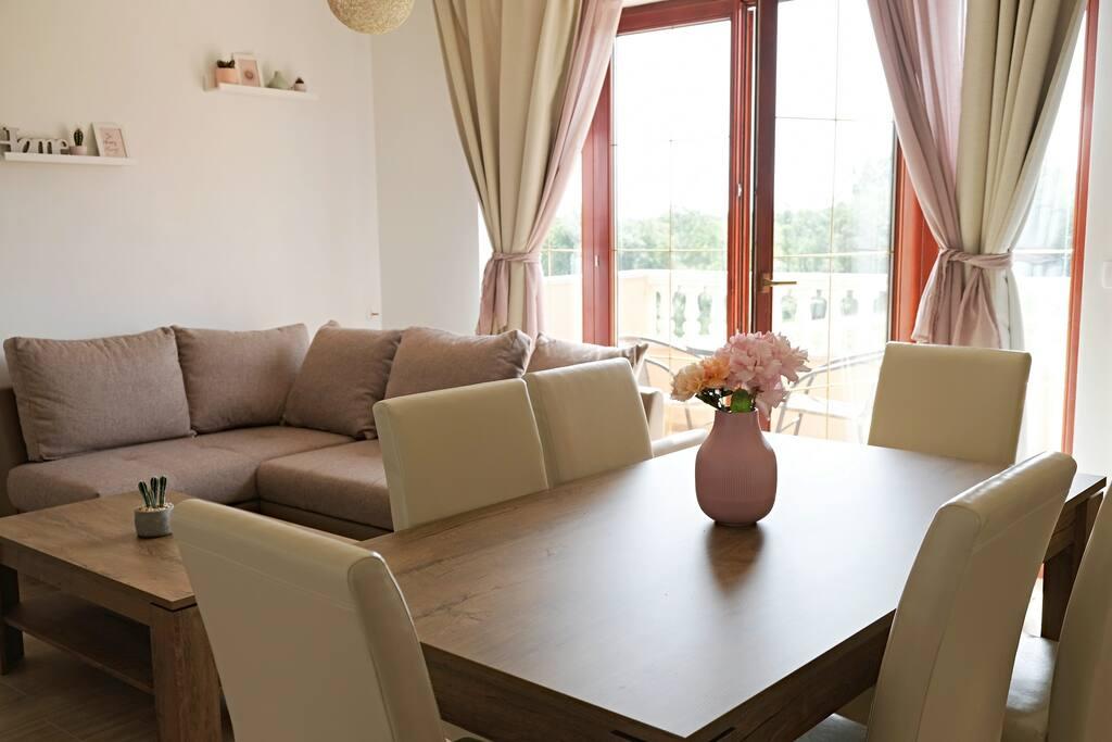 Nové a moderní apartmány Luna a Sole se nacházejí v rodinném domě v klidné vesnici Seget. Seget je malá vesnice obklopená přírodou, 20 minut chůze od nejbližší pláže (1 km) a 3 km od centra Umagu. Apartmány jsou plně vybaveny a jsou vhodné pro rodiny a delší pobyty. Každý apartmán se skládá z plně vybavené kuchyně (myčka, trouba, lednice s mrazákem, kávovar, rychlovarná konvice), obývací pokoj s inteligentní TV, dvě dvoulůžkové ložnice, koupelna a terasa. V apartmánech je také klimatizace, WiFi, Netflix a kryté parkování, které jsou zahrnuty v ceně.