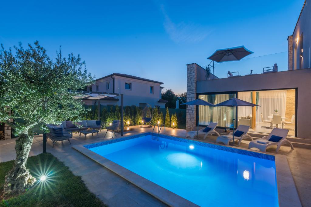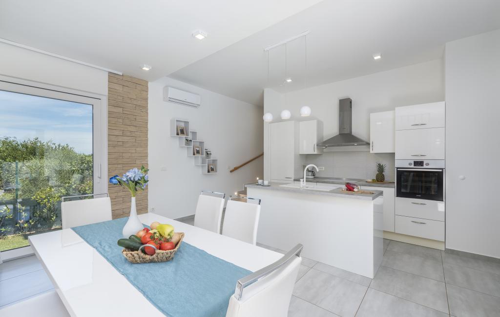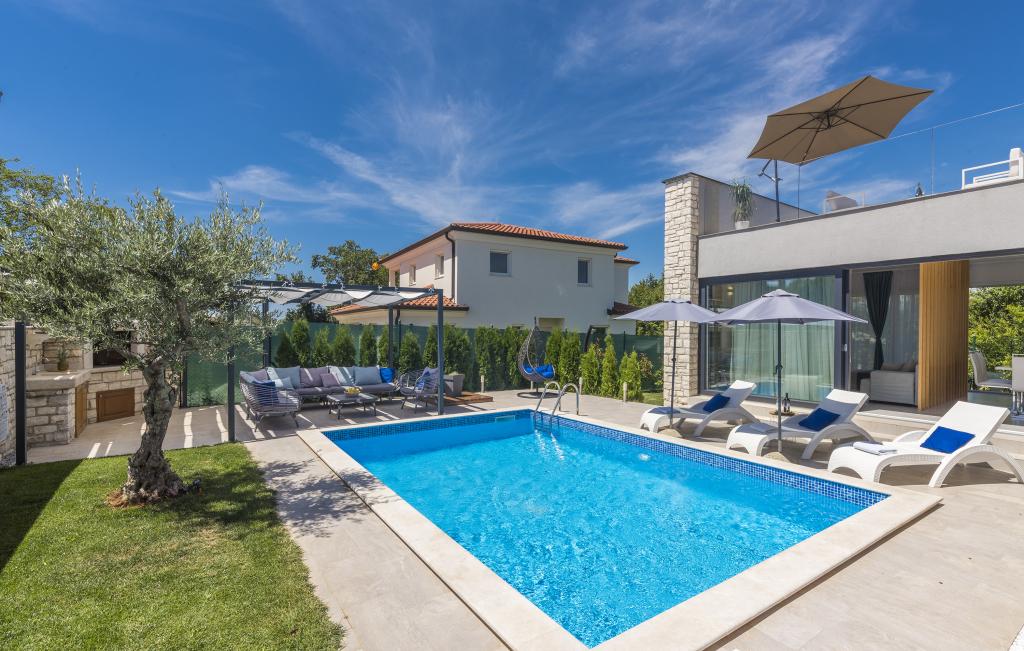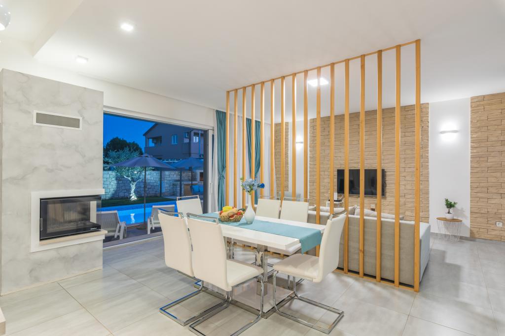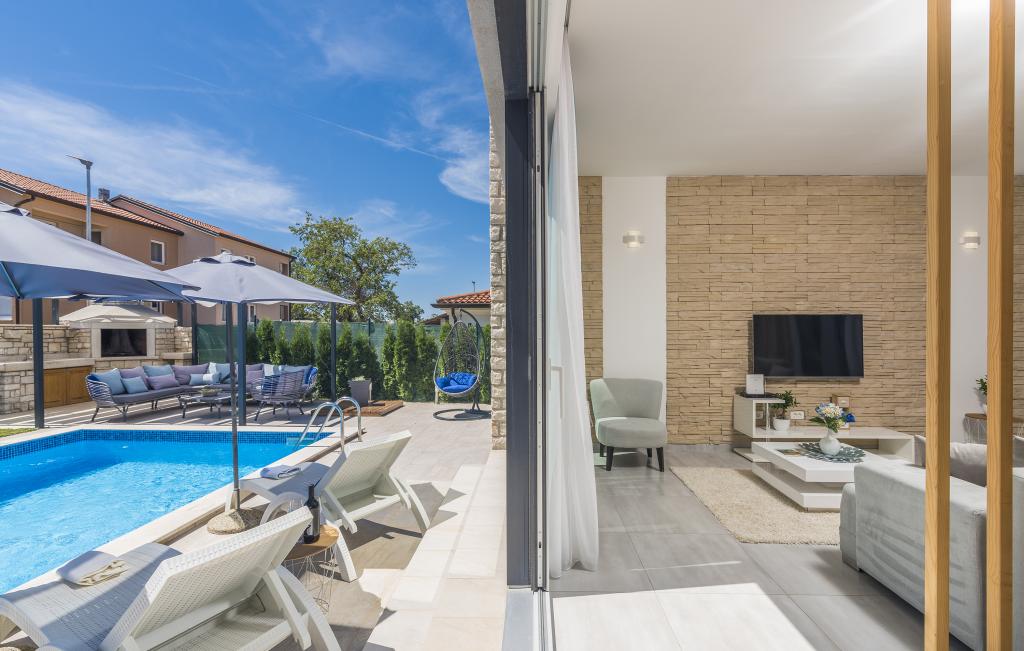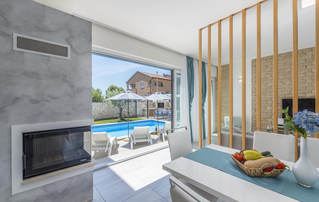 Samotná vila zaujme svým moderním vzhledem uvnitř i venku a z každého detailu dýchá záviděníhodná dávka luxusu. Kombinace tradičních a moderních materiálů (kámen, dřevo a sklo) dodává potřebnou hřejivou intimní atmosféru a detaily jako krb nebo letní kuchyně s bazénem tento dojem jen umocňují. Vila Selest obsahuje prostorný obývací pokoj prosvětlený denním světlem díky velkým proskleným stěnám, dvě ložnice s TV a tři koupelny. Klimatizace a podlahové vytápění ve všech pokojích zajistí, že váš pobyt bude příjemný za každého počasí, a je třeba zdůraznit, že zařízení je vybaveno signálem Wi-Fi a kamerovým systémem pro další zabezpečení. Nemovitost Vily Selest ve Šverki se nachází v pohádkové krajině, odkud se můžete podívat do dalekých Alp a zároveň cítit vůni moře a zároveň se oddávat všem půvabům istrijské přírody v dokonalém klidu a pohodě.