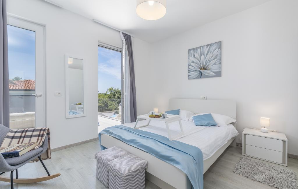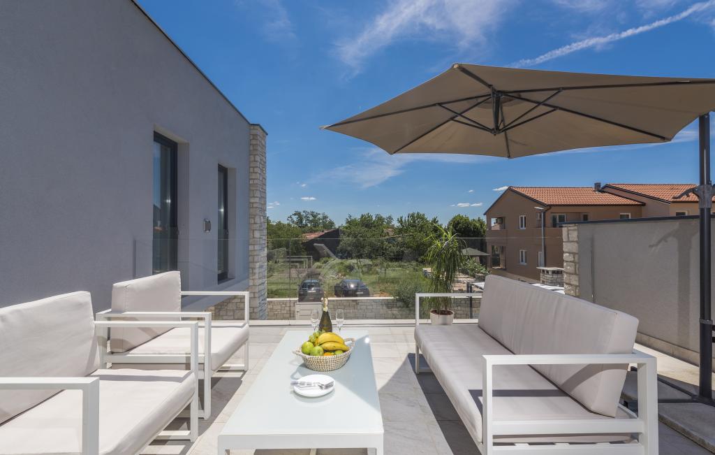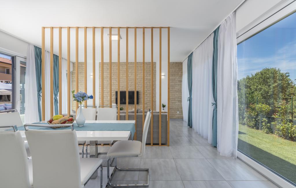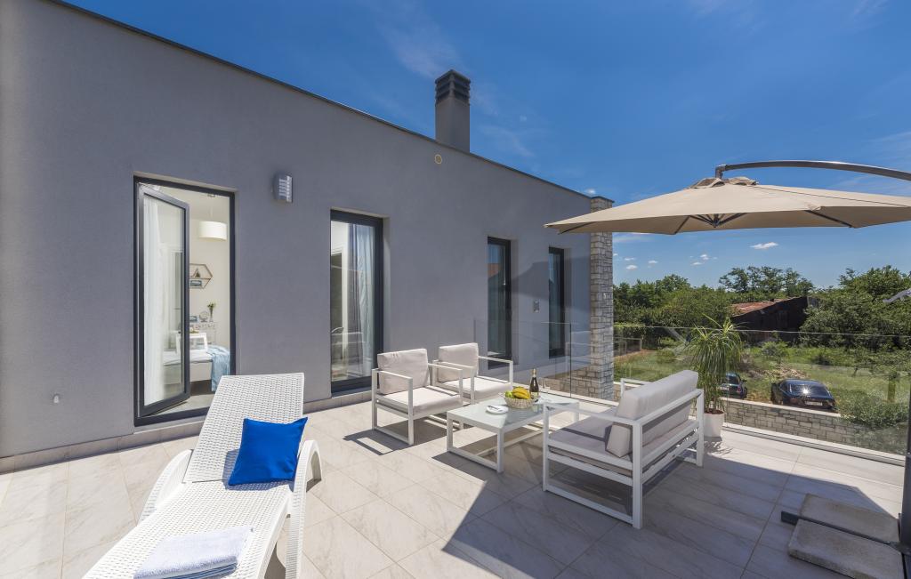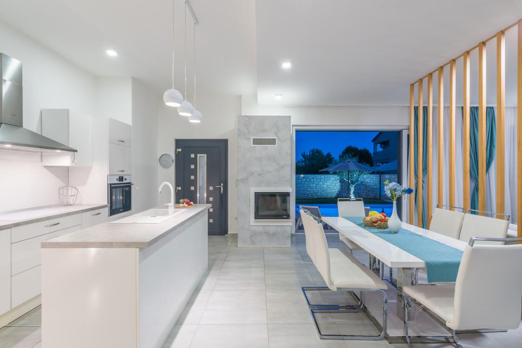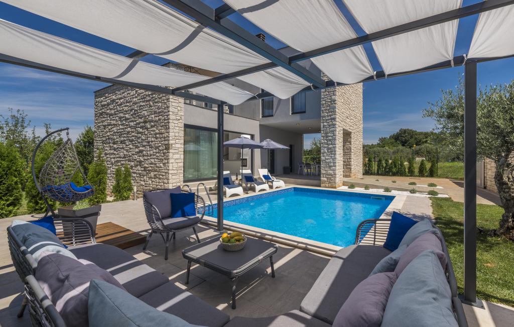 Samotná vila zaujme svým moderním vzhledem uvnitř i venku a z každého detailu dýchá záviděníhodná dávka luxusu. Kombinace tradičních a moderních materiálů (kámen, dřevo a sklo) dodává potřebnou hřejivou intimní atmosféru a detaily jako krb nebo letní kuchyně s bazénem tento dojem jen umocňují. Vila Selest obsahuje prostorný obývací pokoj prosvětlený denním světlem díky velkým proskleným stěnám, dvě ložnice s TV a tři koupelny. Klimatizace a podlahové vytápění ve všech pokojích zajistí, že váš pobyt bude příjemný za každého počasí, a je třeba zdůraznit, že zařízení je vybaveno signálem Wi-Fi a kamerovým systémem pro další zabezpečení. Nemovitost Vily Selest ve Šverki se nachází v pohádkové krajině, odkud se můžete podívat do dalekých Alp a zároveň cítit vůni moře a zároveň se oddávat všem půvabům istrijské přírody v dokonalém klidu a pohodě.