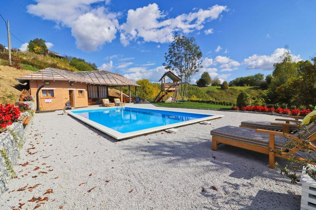 Prázdninový dům Grga s jacuzzi a bazénem se nachází v Gornja Voća a nabízí zahradu, venkovní bazén a výhled na hory. Tato nemovitost nabízí přístup na balkon, stolní tenis, bezplatné soukromé parkoviště a bezplatné Wi-Fi. Tato klimatizovaná chata má 3 ložnice, satelitní TV, jídelnu, kuchyň s lednicí a obývací pokoj. Ručníky a ložní prádlo jsou v ceně chaty. Hosté mohou využívat saunu v prázdninovém domě. Golfové hřiště Ptuj je 44 km od chaty Grga s vířivkou a bazénem. Nejbližší letiště je letiště Edvard Rusjan Maribor, 50 km od ubytování.