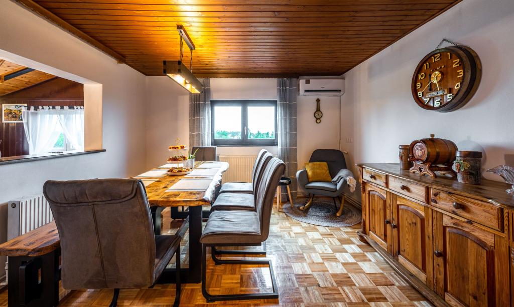 Rekreační dům "Nihil deest" se nachází ve Falinić Breg, obec Cestica, 20 km od Varaždinu a 6 km od hraničního přechodu Dubrava Križovljanska. Dům nabízí plně vybavenou kuchyň, koupelnu s vanou, sprchovým koutem a toaletou, samostatné WC, jídelnu, obývací pokoj a 2 ložnice s manželskou postelí a 1 pokoj s jedním lůžkem. Dům má terasu s hydromasážním bazénem a dřevěným zahradním nábytkem, grilem a venkovní solární sprchou. Dům je vhodný pro rodiny s dětmi. Dvůr domu je oplocený. Na dvoře je k dispozici dřevěná prolézačka pro děti, mini tělocvična, závěsná bowlingová dráha a badmintonový set. Od června do konce září je v provozu venkovní koupaliště (rozměry 7,5x3,5 m) s plochou na opalování.