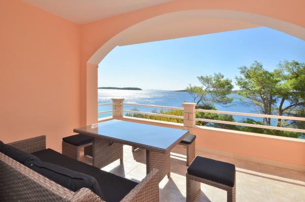 Villa Silva se nachází v první řadě u moře, v klidném místě, 7 km od New Vela Luka. Pláž je v přední části domu a tam je oblázková pláž vhodná pro děti