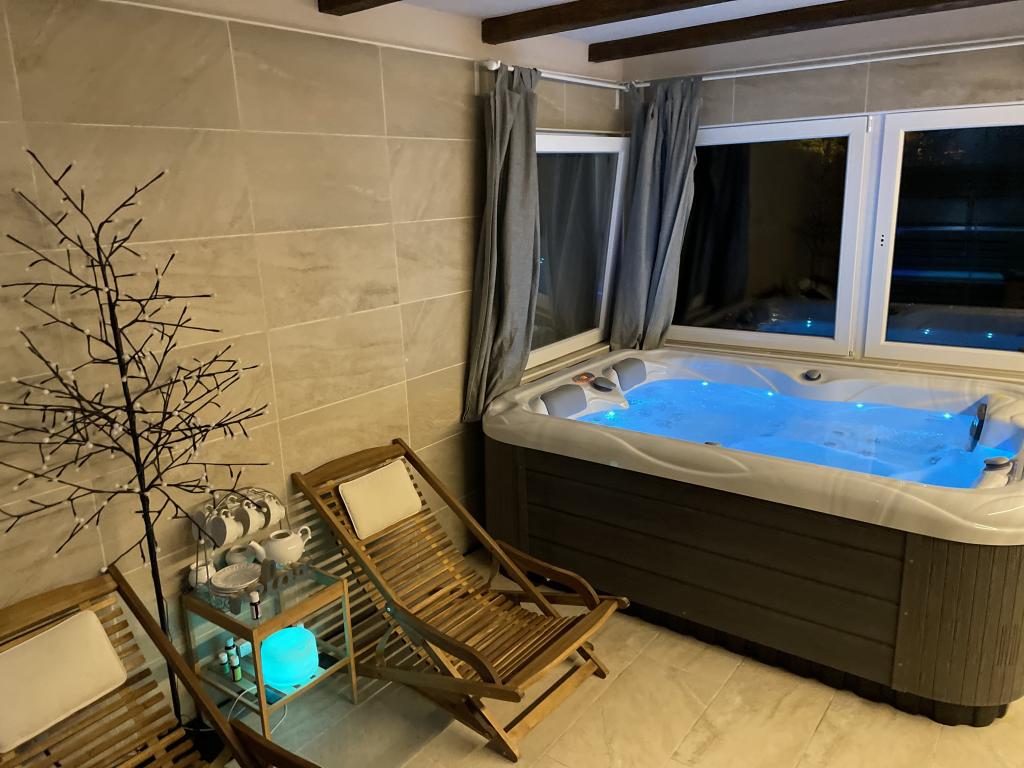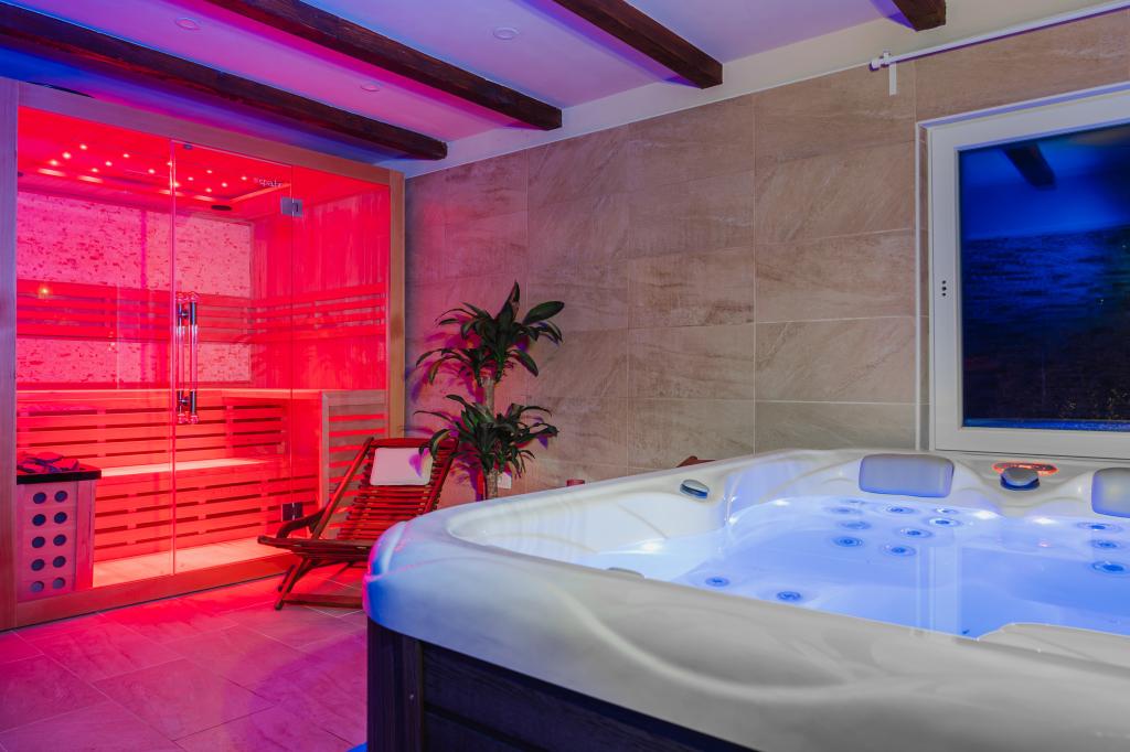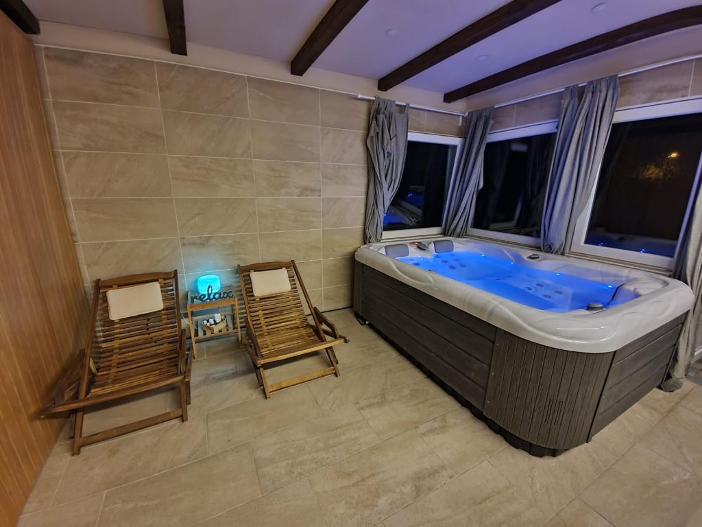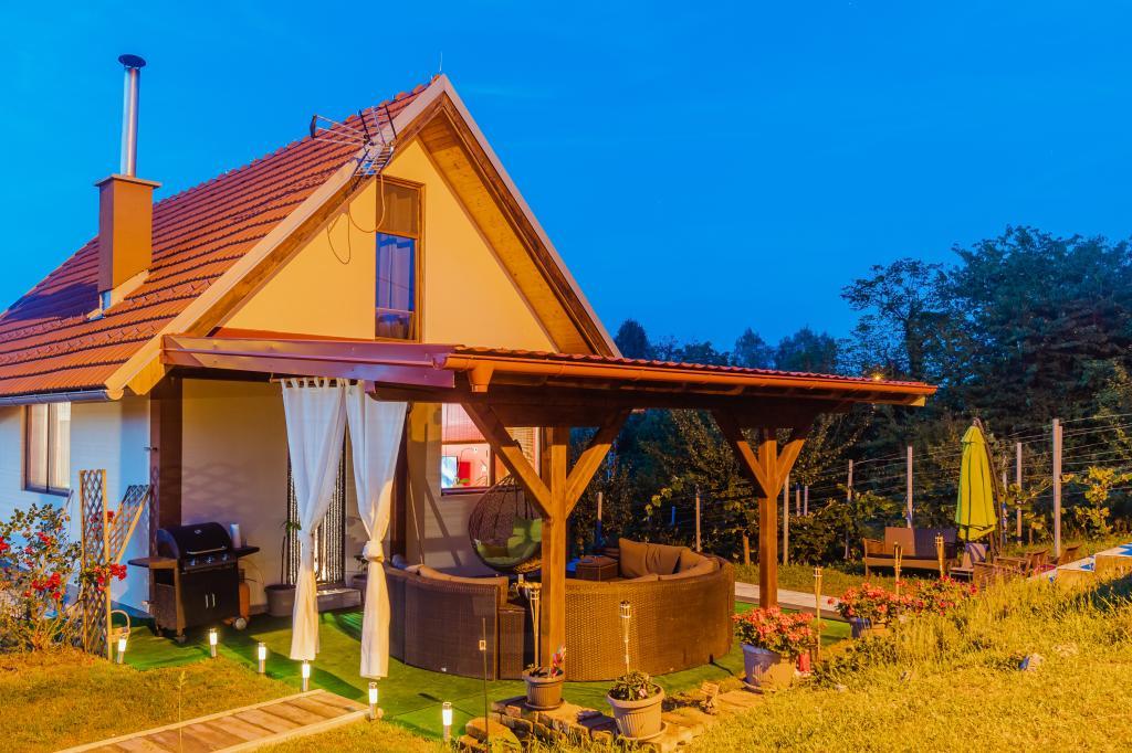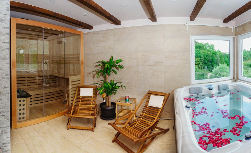 Prázdninový dům "Wellness House Gudci" se nachází na kopcích Vukomeričke gorice, ve městě Gudci. Je obklopen lesem, vinicemi a čistou přírodou. Je plný obsahu pro odpočinek a zábavu. Je to 15 minut jízdy od letiště Franjo Tuđman. Obsahuje velkou saunu pro 5 osob, která má místo k ležení a možnost nastavení teploty tak, abyste měli finskou i Bio saunu dle potřeby, podlahové vytápění v celém wellness, hydromasážní bazén s velkým počtem trysek a ozonátorem, který je zodpovědný za neustálou dezinfekci vody. Všem hostům je k dispozici aromaterapeutický difuzér. Wellness centrum je k dispozici 24 hodin denně a má samostatný vchod. Pohled je pouze na přírodu. Zatemňovací závěsy, LED osvětlení, hvězdná obloha, velká termostatická sprcha. Termokryt bazénu, teplotu hydromasážního bazénu lze individuálně upravit. Barevná terapie je k dispozici v sauně a hydromasážním bazénu.