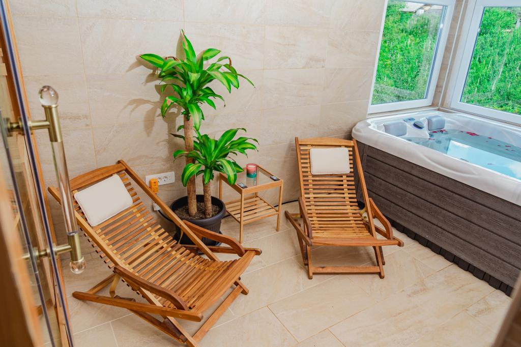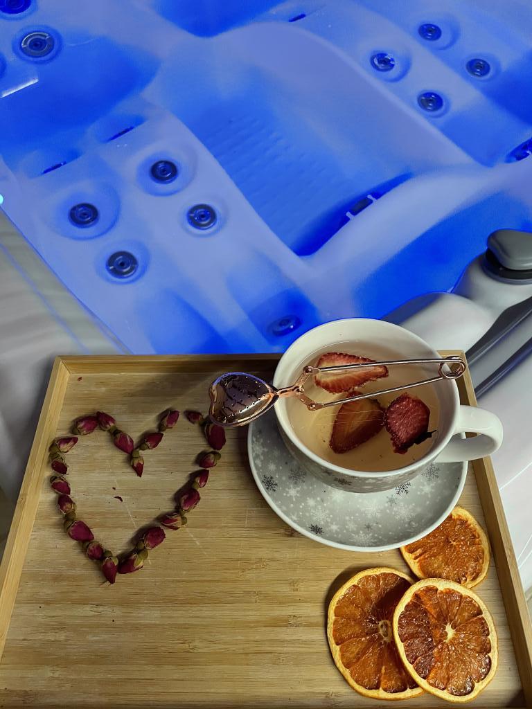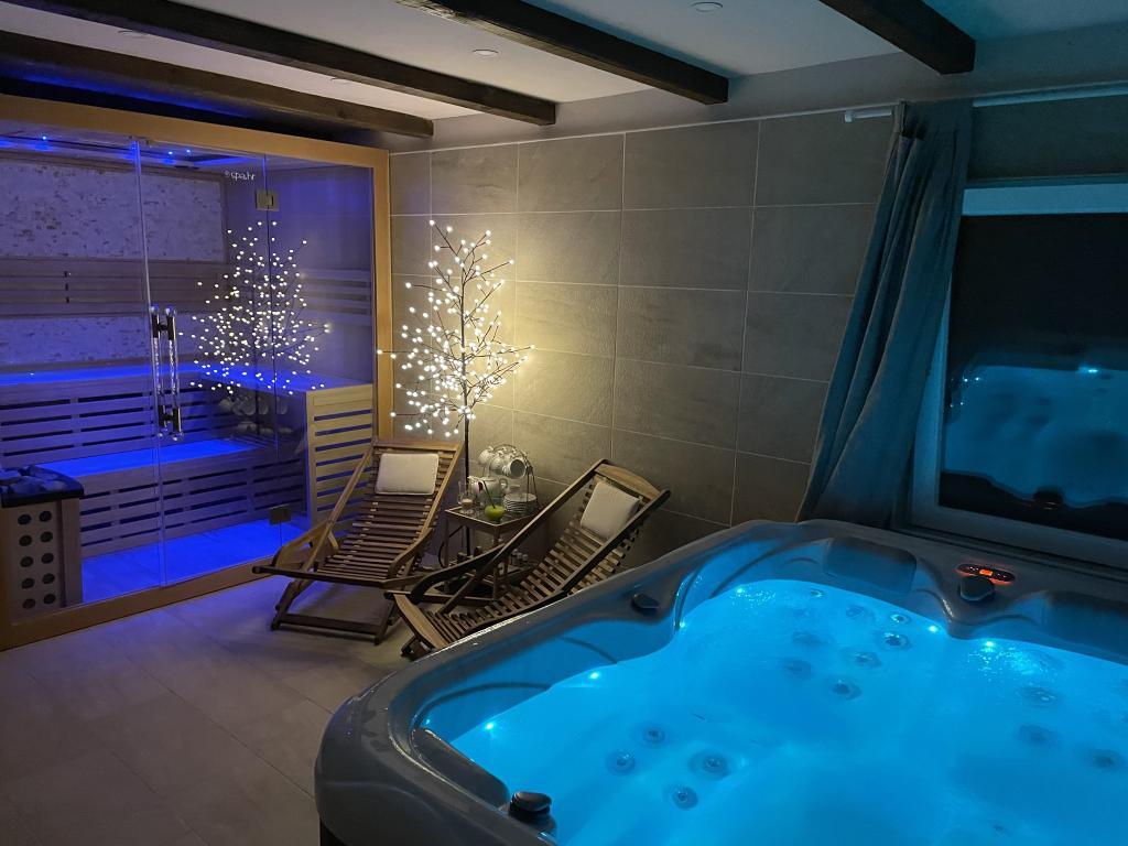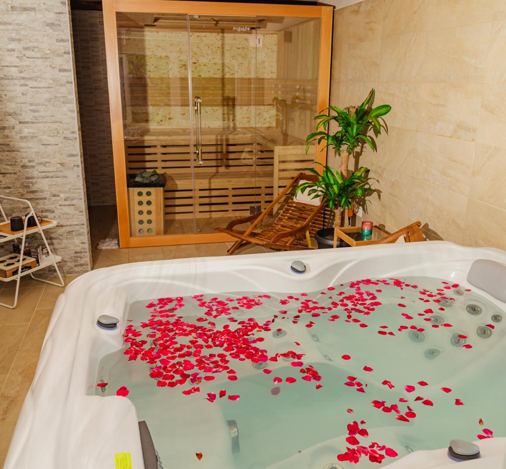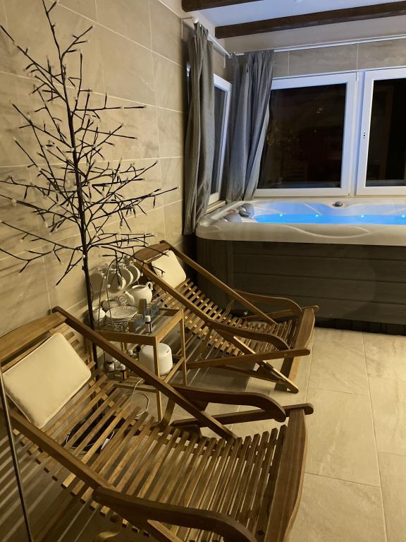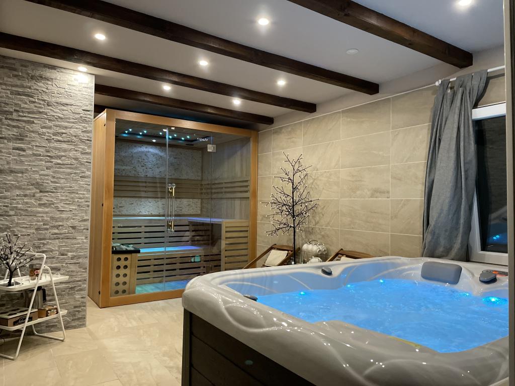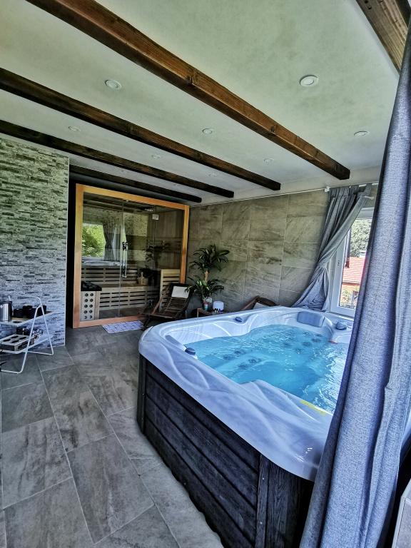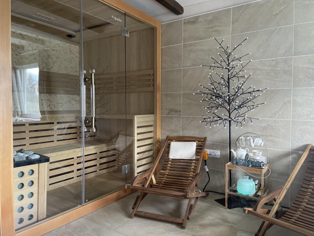Pobytová taxa je v ceně.rekreační dům dům pro malé oslavy lázeňské centrum mini wellness vířivka finská sauna krytá terasa relaxační zóna relaxační lehátka procházky v lese