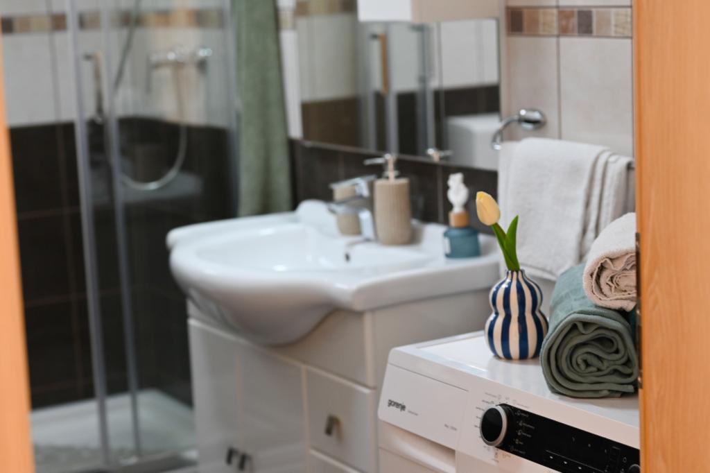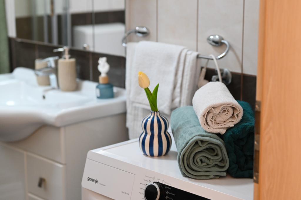 V ceně je welcome drink, stejně jako možnost zapůjčení SUP. V samotném Vinišće je možné si pronajmout loď a objevovat skryté písečné pláže. Trogir, město pod ochranou UNESCO, se nachází nedaleko města, asi 20 kilometrů daleko. Na vaše přání můžeme doporučit okolní města, která jsou krásná k prohlídkám památek (Primošten, Rogoznica, Národní park Krka). Vinišće také nabízí několik cyklostezek, horských stezek a oblastí k prozkoumání. S hostiteli je možné rybařit a potápět se. Byt je velmi dobře a moderně vybaven, zejména kuchyňská linka, která má veškeré příslušenství. V obývacím pokoji je velká chytrá televize a má možnost sledovat Netflix.