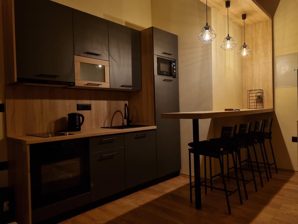 Výborná poloha v centru města! Kompletně nově zrekonstruovaná garsonka (33m2) pro pohodlné ubytování pro dvě osoby plus rozkládací gauč pro dvě osoby, určeno pro děti (děti do 12 let zdarma), zcela nová vybavená kuchyň se všemi spotřebiči, nově vybavená koupelna se sprchovým koutem, pračkou/sušičkou, kompletní prostor klimatizovaný a vybavený podlahovým vytápěním! Půjčujeme minimálně na 2 noci!