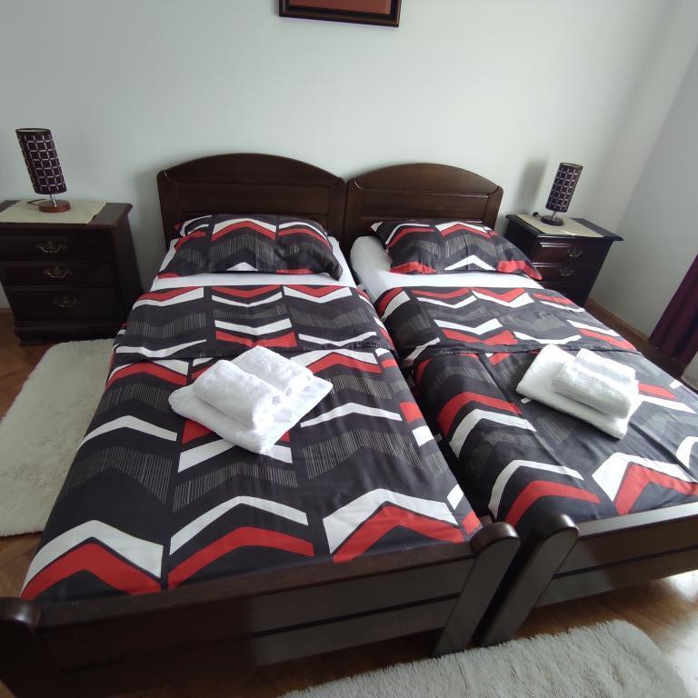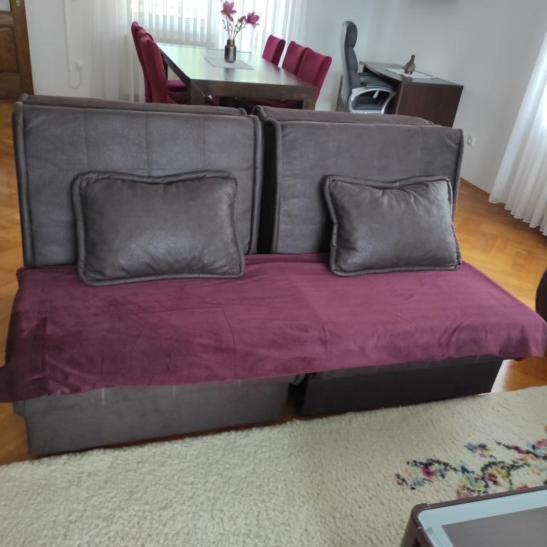 Rekreační dům Ruža Vinkovci je jednopodlažní dům o rozloze cca. 140 m2, jen 10 minut chůze do centra Vinkovci a Vinkovačka lampa. Je prostorný se spoustou přirozeného světla v klidné ulici a klidné čtvrti s velkou zelenou zahradou a ovocným sadem cca 1300 m2 a nádherným výhledem z terasy, která je přístupná z velkého obývacího pokoje 40 m2. Hosté, kteří v domě dosud zůstali, říkají, že je to oáza klidu, kde si můžete odpočinout od každodenního shonu. Dům má tři prostorné ložnice (jeden pokoj s manželskou postelí a vlastní koupelnou a dva pokoje se dvěma lůžky pro jednu osobu a další velká koupelna. Kuchyň 12 m2 s novými domácími spotřebiči je oddělena od obývacího pokoje a má také přímo vstup na terasu.Dům je kvalitně postaven s dubovými vnitřními tesařskými a parketovými podlahami, zatímco venkovní tesařské práce jsou plastové.Dům má ústřední topení a klimatizaci v obývacím pokoji.Parkovat lze na prostorném dvoře nebo v garáži.