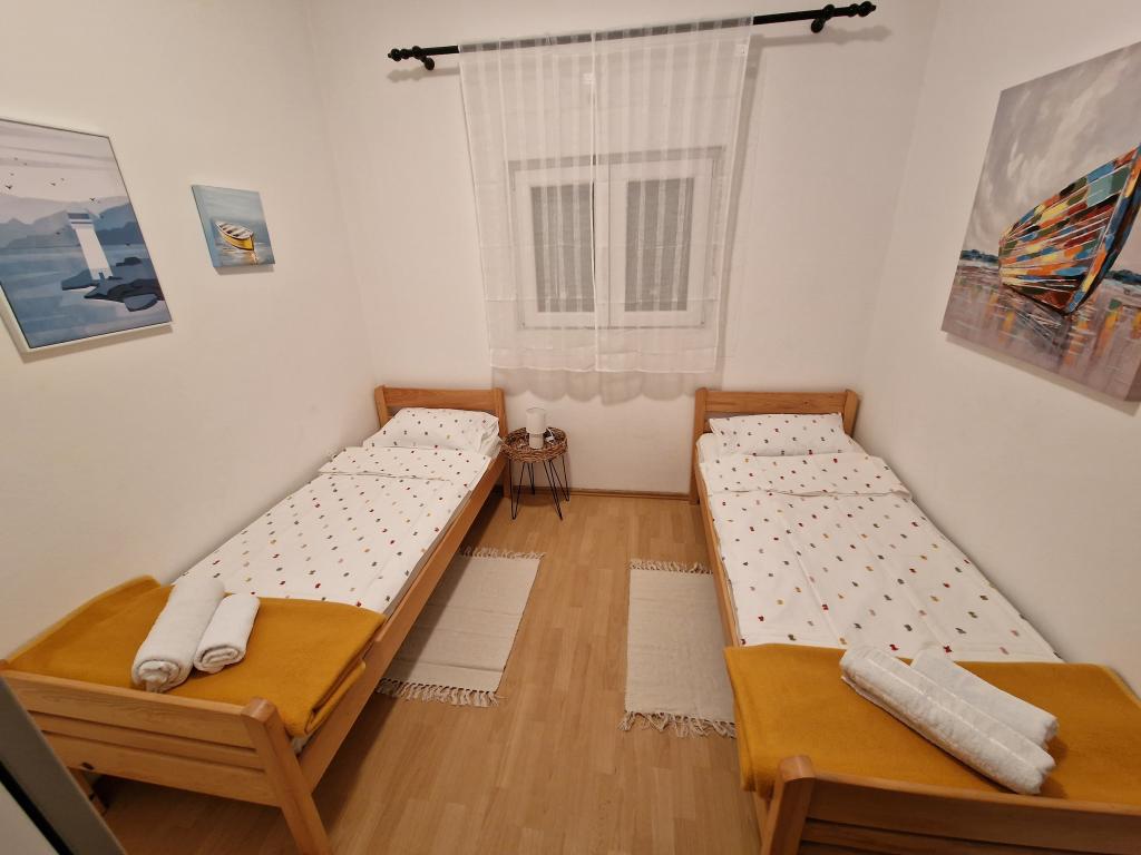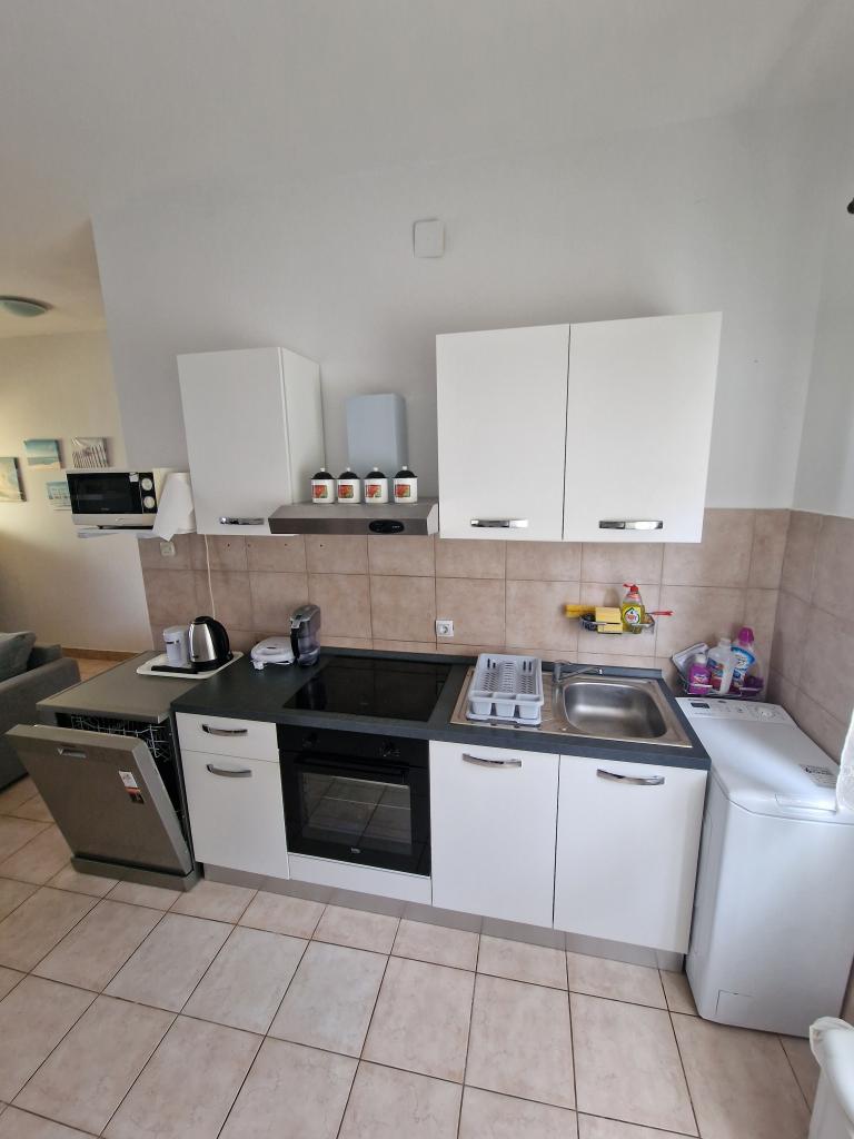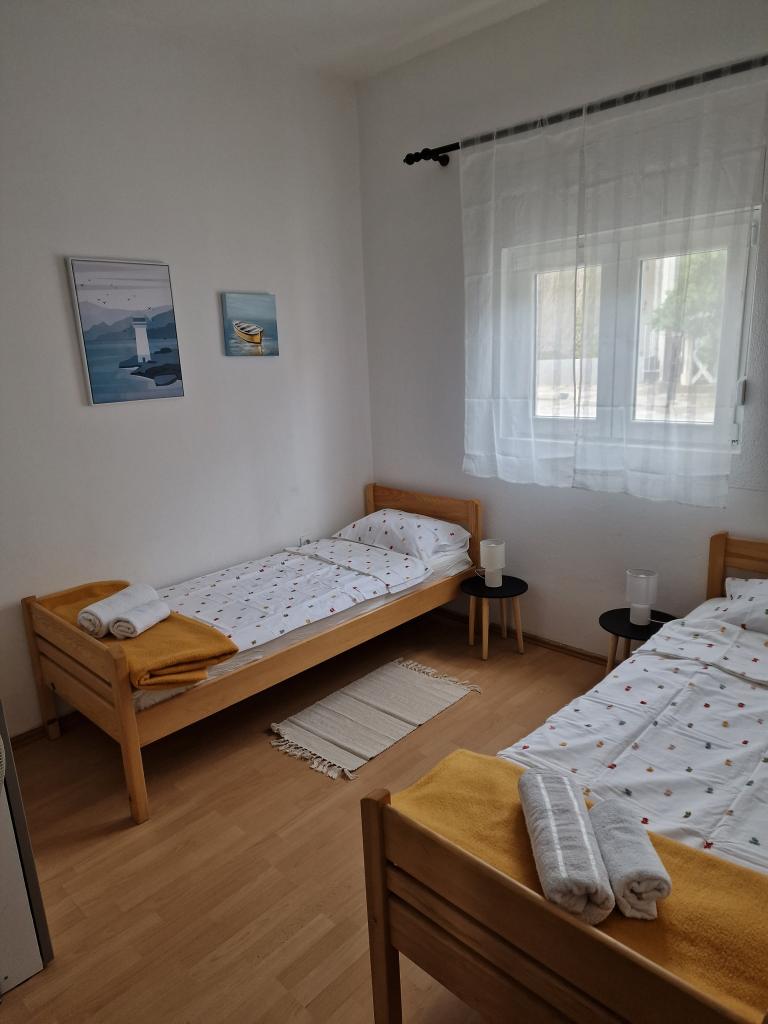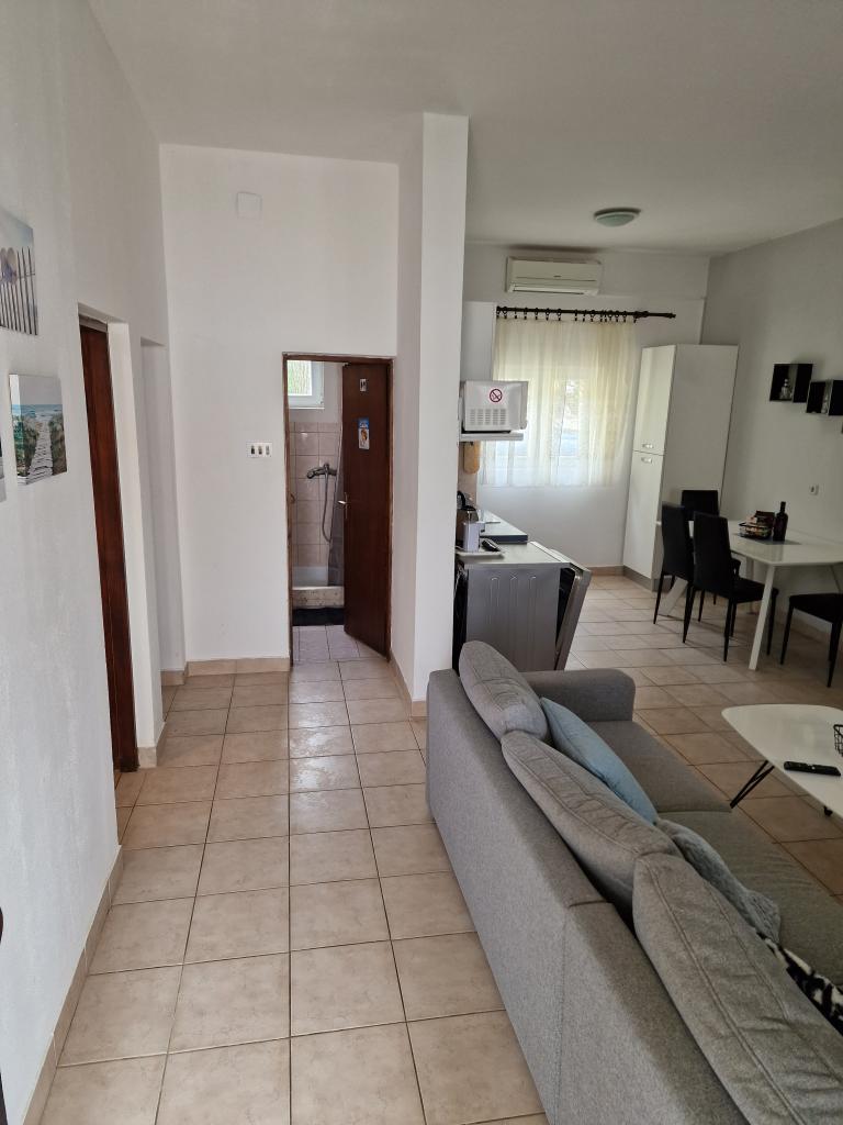 Plně vybavený apartmán v klidné části ostrova, který doposud sloužil výhradně pro potřeby rodiny majitele. Skládá se ze 2 ložnic (manželská postel a dvě samostatná lůžka, které lze spojit do dvoulůžkové), kuchyně, jídelny, obývacího pokoje s velkou TV, WC/sprcha, lodžie. Nejbližší pláže jsou 10 minut chůze, obchod 5 minut a centrum 3 km, kde jsou kavárny, kluby, restaurace a větší obchody. Ulice do dvora není rušná a je skvělá pro děti, kterých může být v ulici docela dost. Parkování je ve dvoře.