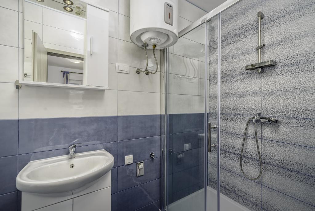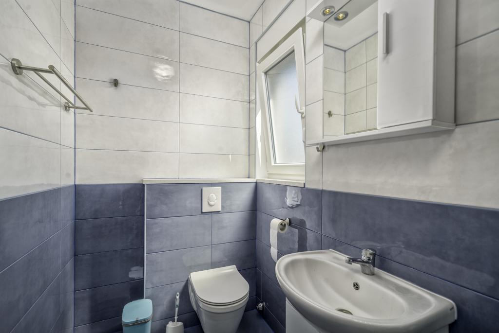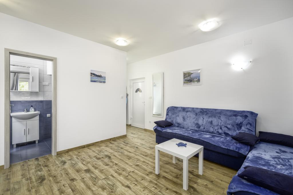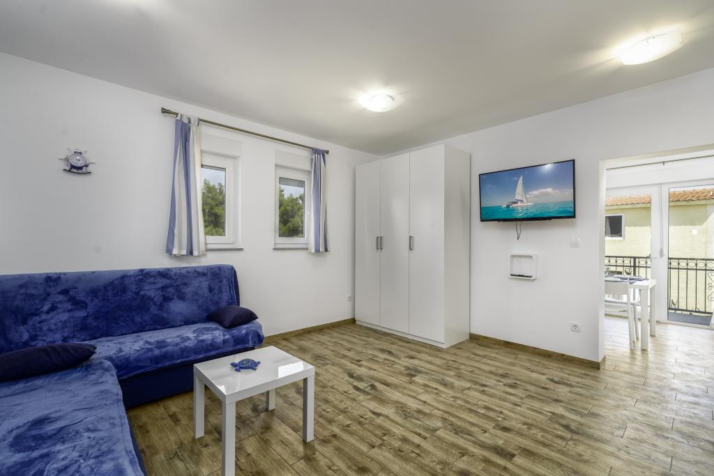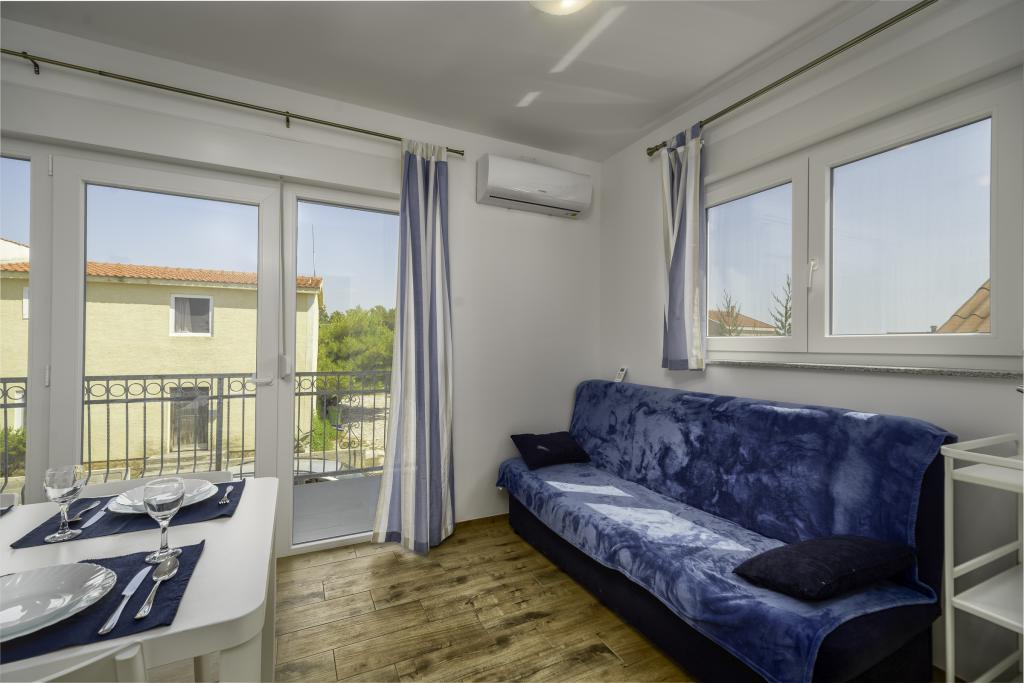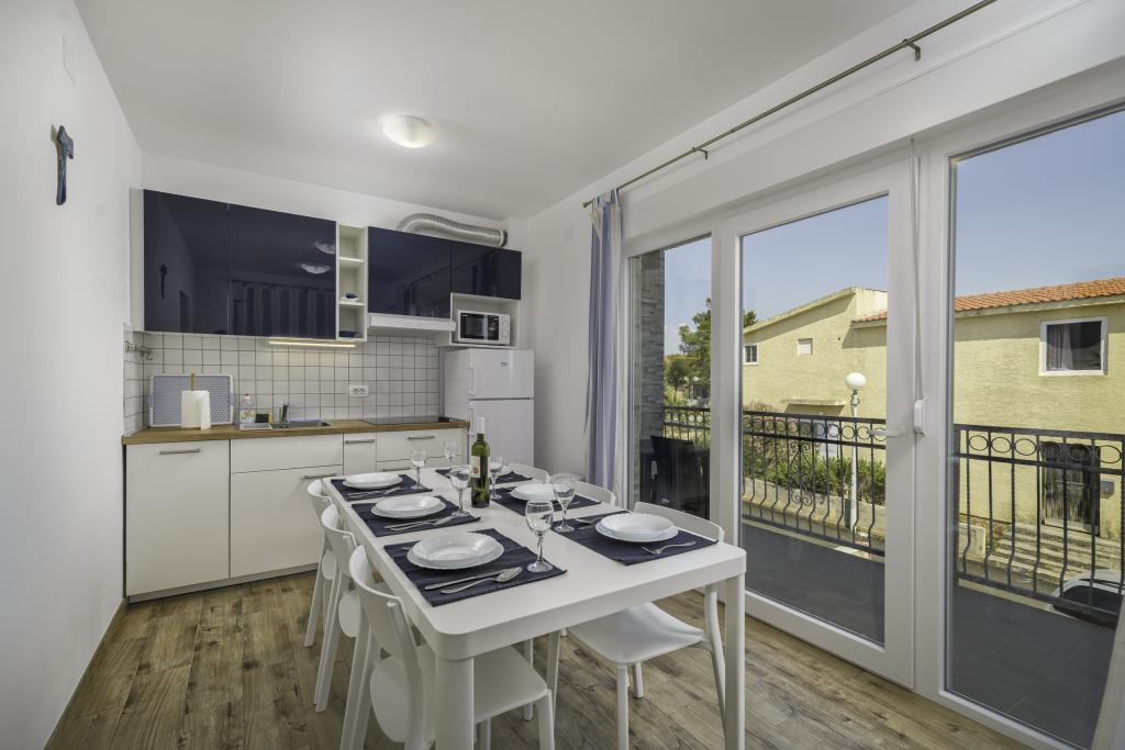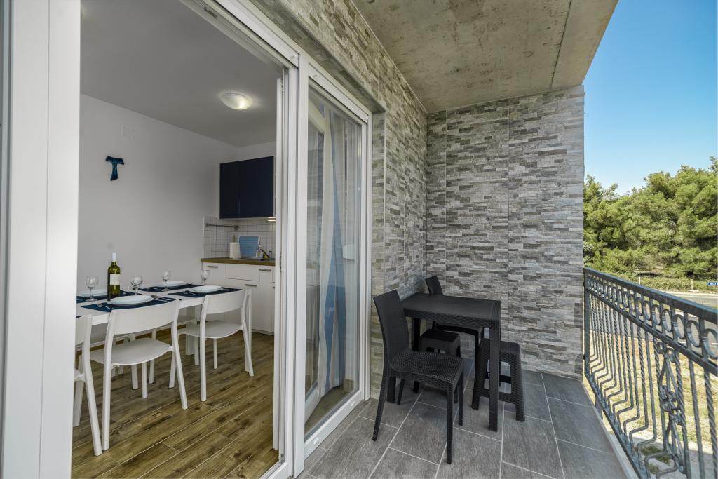 Apartmán Rebecca se nachází v nově postavené budově v prvním patře s prostorným balkonem. Je plně vybaven pro příjemný pobyt (klimatizace, inteligentní televize, spíž ve všech oknech, myčka), městský vodovod. Objekt se nachází na jižní straně ostrova, 5 min. chůze od pláže. Parkování je zajištěno, ostrov je spojen s pevninou mostem.