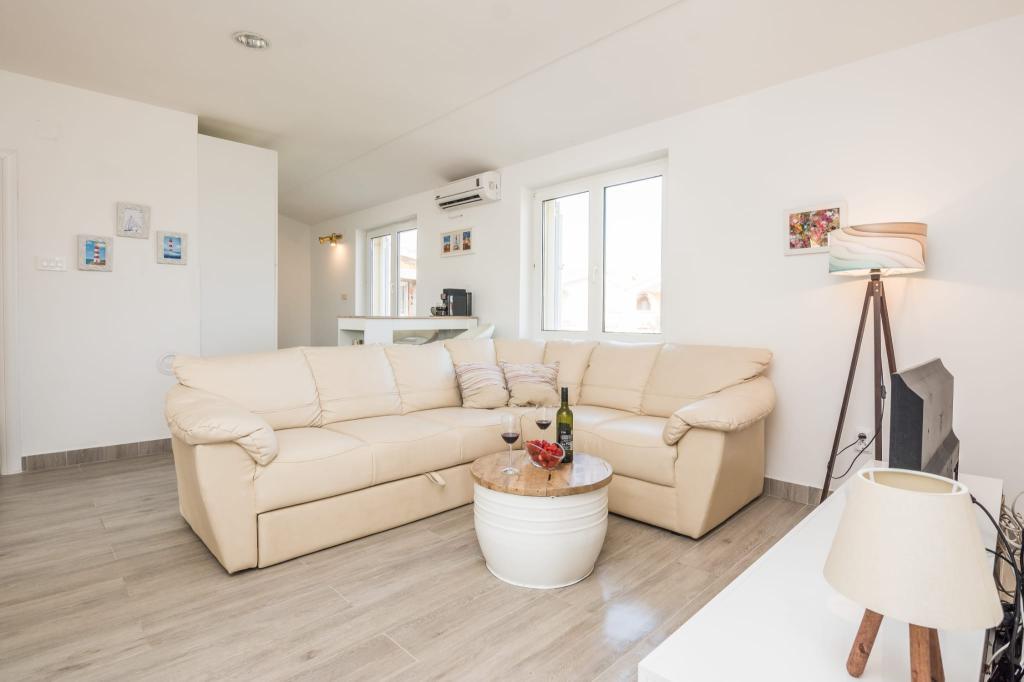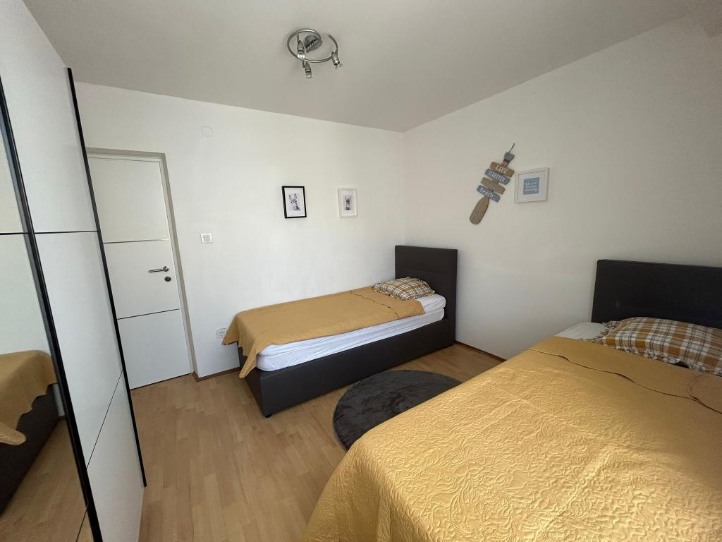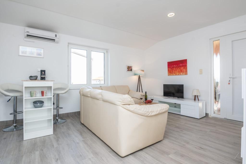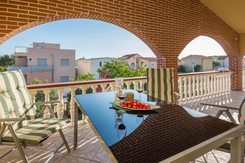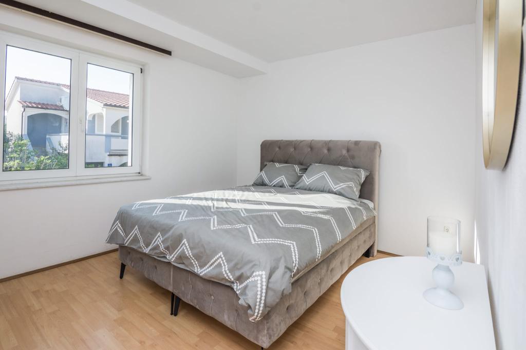 Moderně vybavený apartmán se dvěma ložnicemi, obývacím pokojem, vybavenou kuchyní (kávovar, rychlovarná konvice, myčka), klimatizací, WiFi a velkou a prostornou terasou, parkovací místo se nachází v objektu, stejně jako gril. Byt se nachází v bezprostřední blízkosti pláže (200 m), obchodů (200 m) a restaurací (100 m). Vzdálenost do centra města Vir je 2,4 km.