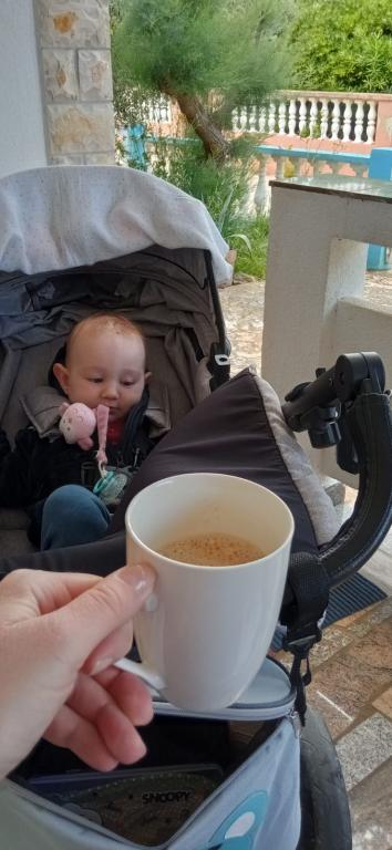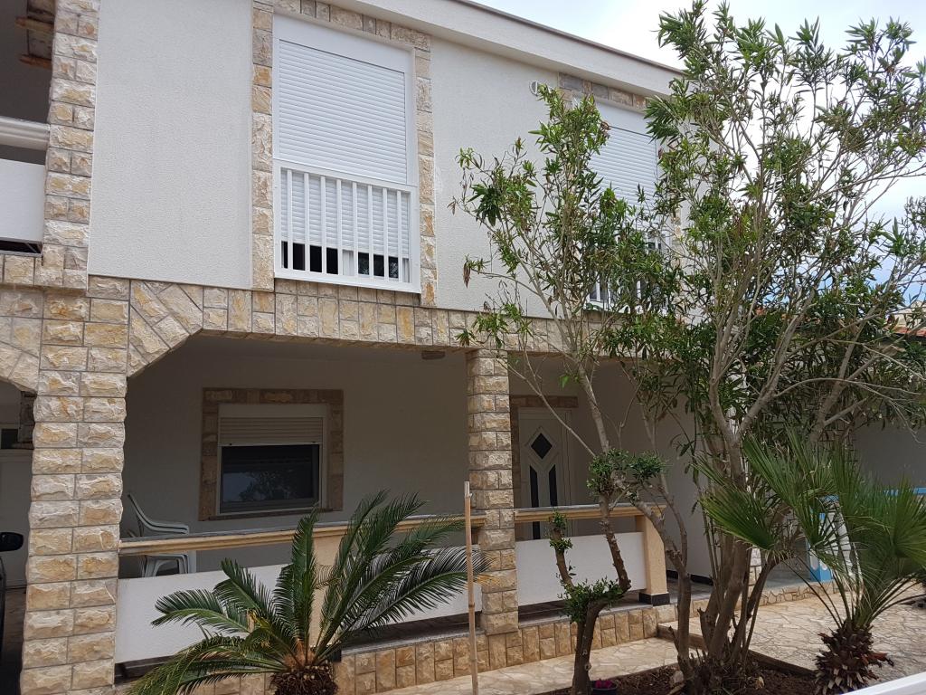 Pobytová taxa není v ceně. Doklad o potvrzení rezervace při rezervaciVítaný nápoj a káva pro unavené cestovatele je vždy vítán a sladkosti pro děti. K dispozici jsou dvě kryté terasy se stoly a židlemi na přestávku od plavání, jídlo, sklenku socializace. Jeden je na západní straně, druhý na východní straně. Ulice je slepá, bez dopravy a s lehkým schodem v rovině 50 metrů vede na pláž a moře. Na pláži je malá restaurace a pizzerie Toni, zmrzlina a spousta zařízení pro rodiče a děti od různých sportovních zařízení až po herny. Každou noc terasa s živou hudbou. Pokud se rozhodnete chodit do krásného kostela sv. Juraj a centrum Viru, žádný problém, potřebujete asi 20 minut. Ve stejném kruhu je i menší Tommy Mall se všemi potřebnými potravinami.