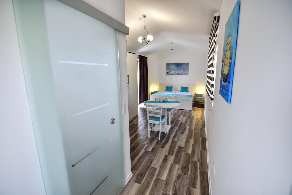 Byt pro každé doporučení, které nás potěšilo. Krásně zdobené, nové a velmi čisté a uklizené, opravdu hodné chvály. Terasa je nádherná, večer se sklenkou vína a otevřeným hvězdným nebem nad vámi je k nezaplacení. Ubytování i hostitelé jsou úžasné, nádherné přivítání, které nám navždy zůstane v paměti. Jedna úžasná rodina, která vás přivítá s otevřenou náručí, usměvavými tvářemi a plným srdcem. Pokud máte malé dítě, o klid a pohodu se bát nemusíte. Vše je v dosahu obchodů, pekáren, restaurací, kaváren, pláží, venčení... Byli jsme opravdu spokojeni a toto ubytování bychom každému doporučili.