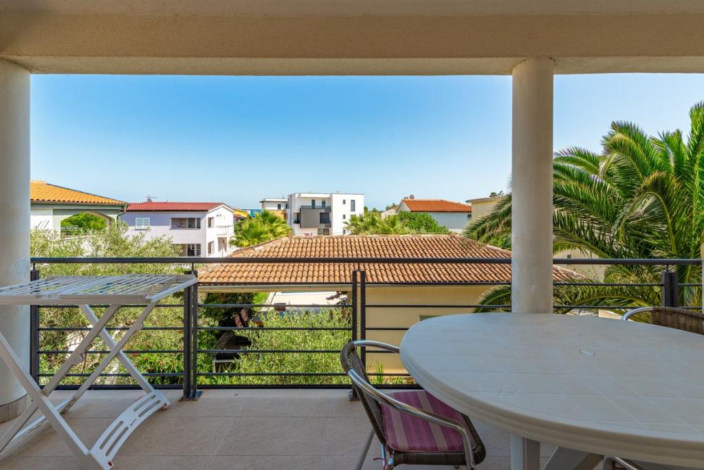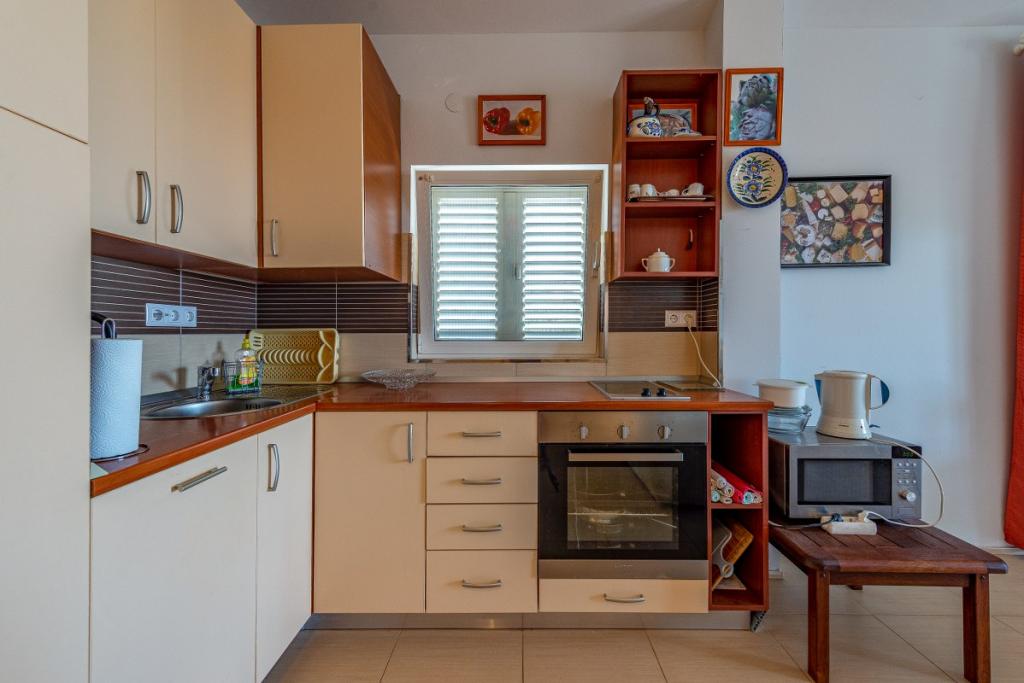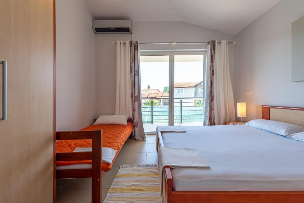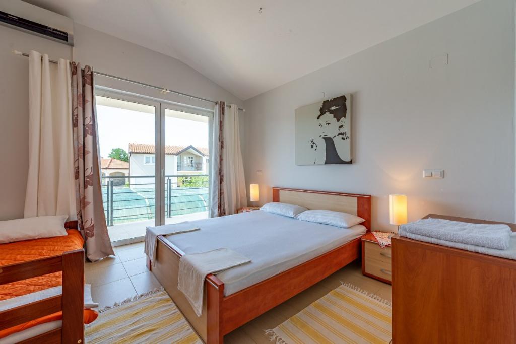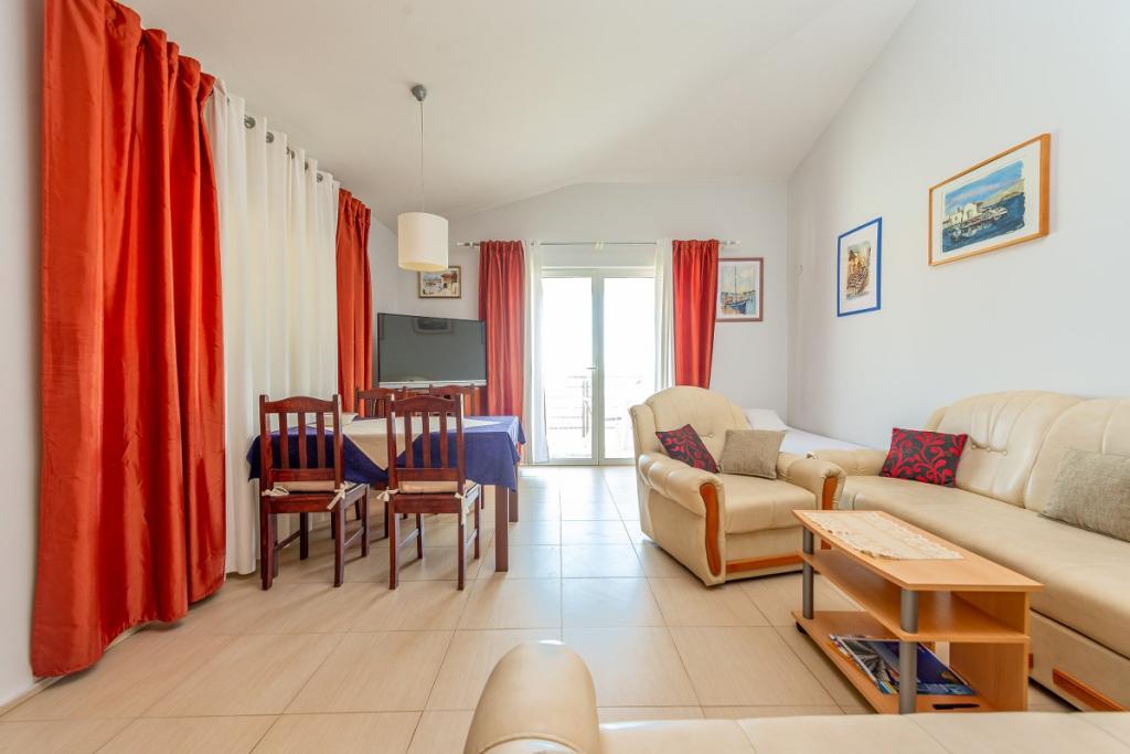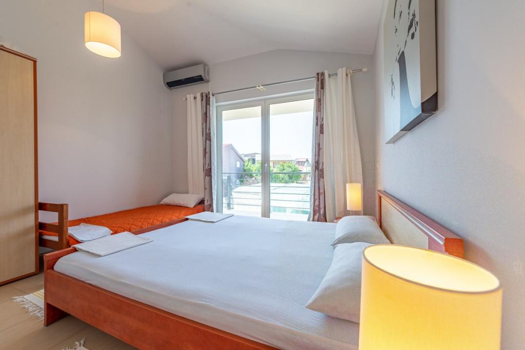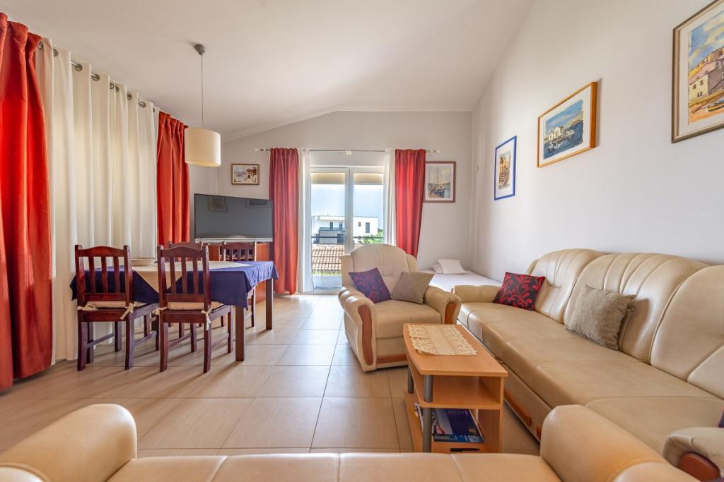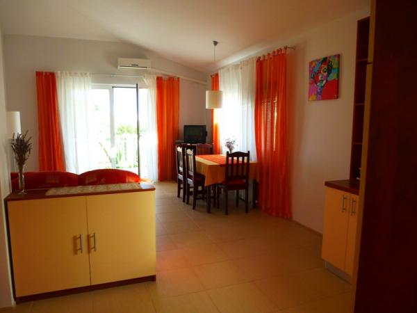 Apartmány se nacházejí v 1. patře rekreačního domu, cca 180 m od pláže Jadro a centra města Vir. Pláž Jadro, nejznámější pláž na Viru. Apartmány jsou prostorné s jednou ložnicí s francouzskou postelí a další přistýlkou. a obývací pokoj s rozkládací postelí. Majitel přijímá 2 dospělé osoby se dvěma dětmi nebo 3 dospělé a 1 dítě. K dispozici jsou 2 terasy.Terasy jsou orientované na moře,druhá terasa je na severní straně.Apartmány mají klimatizaci,TV,sat,wifi. Parkování je před bytem. Prostřednictvím agentury Vir turizam pořádáme výlety na Kornati, do národních parků Krka, Paklenica, Plitvice. Půjčovna kol, motorových člunů a člunů. Škola potápění. Bazén je možné využívat pouze od 01.06. - 30.06.