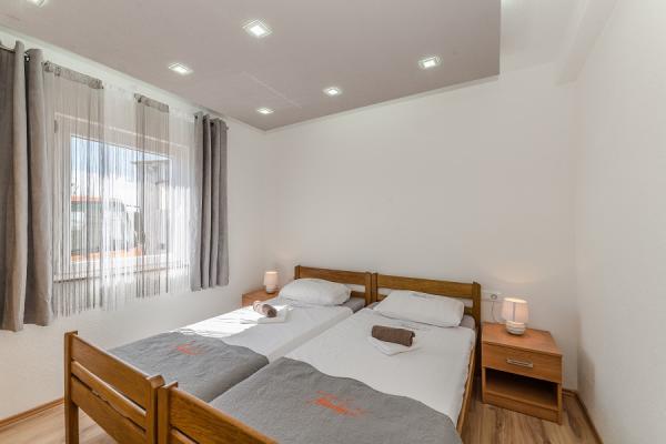 Byty Alladin, jsou prostorné a moderní zařízení v klidné djijelu ostrově Vir. Skládají se ze dvou ložnic, kuchyně, obývací pokoj, koupelna a terasa. Vzdálenost od moře je 150 m, na nádvoří parkovacích míst, gril a trampolínou pro naše nejmenší hosty. Alladin Apartmán A1 se nachází v přízemí a apartmán A2 Aladin je na podlaze.