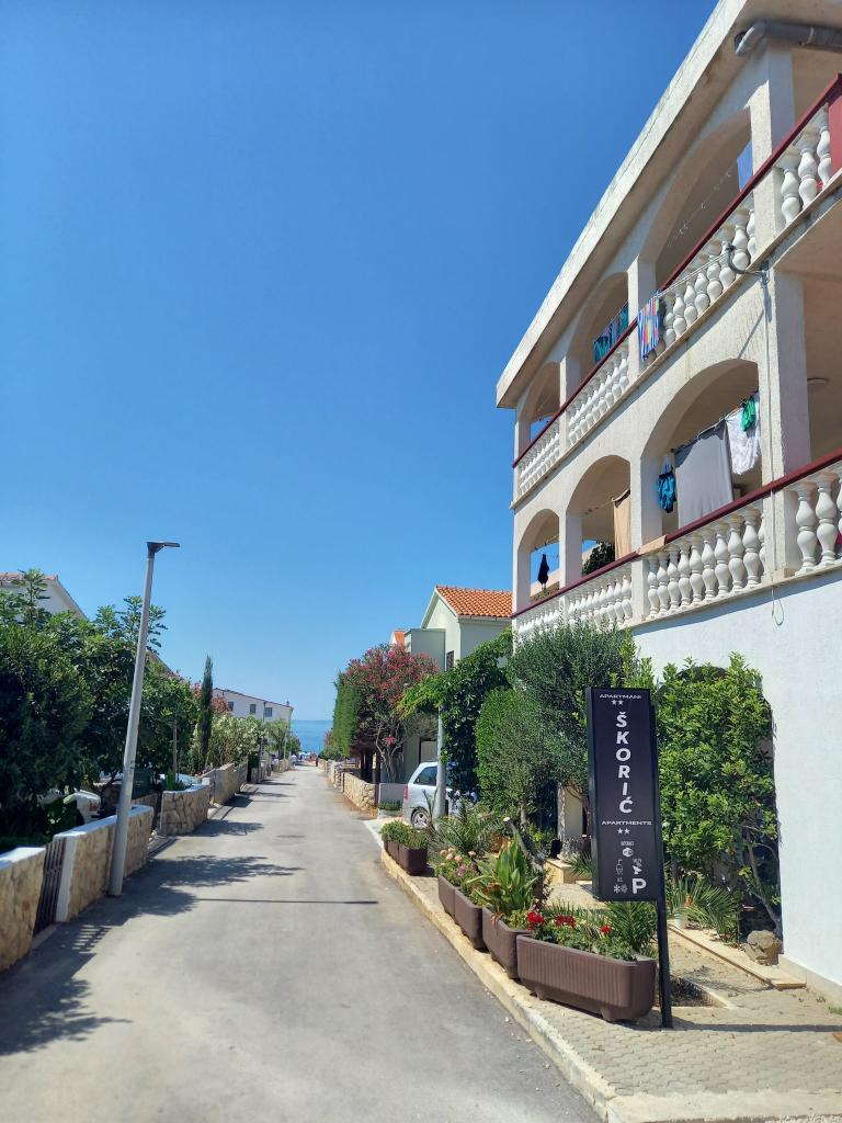 Apartmány se nacházejí na jižní straně ostrova Vir ve vesnici Miljkovica. Ostrov Vir je vzdálen přibližně 26 km od města Zadar a je spojen s pevninou mostem. Nabízíme 4lůžkové a 5lůžkové apartmány umístěné v 1. a 2. patře. Každý apartmán má vlastní vchod přes velkou krytou společnou terasu a vlastní parkovací stání 160 m od apartmánu. Apartmány se skládají z plně vybavené kuchyně (příbory, nádobí, plynový a elektrický sporák, 50l lednice s mrazákem, mikrovlnná trouba a rychlovarná konvice), dvou ložnic (lůžkoviny a ručníky v ceně), koupelny se sprchovým koutem, TV se satelitním příjmem, klimatizací a WiFi zdarma. Apartmány jsou 100m od oblázkové pláže. Apartmány jsou kategorizovány 2 hvězdičkami. Pobytová taxa, WiFi a použití klimatizace v ceně.