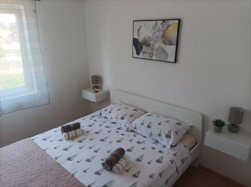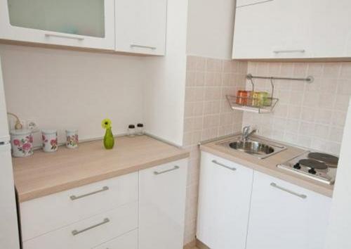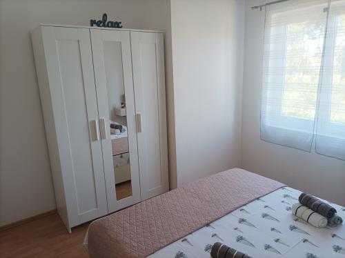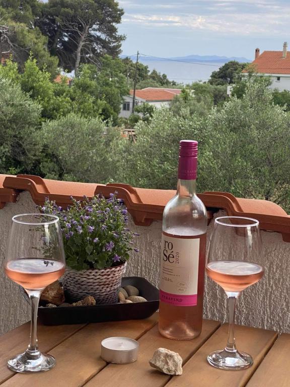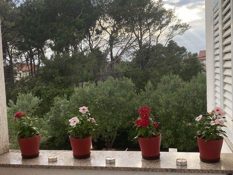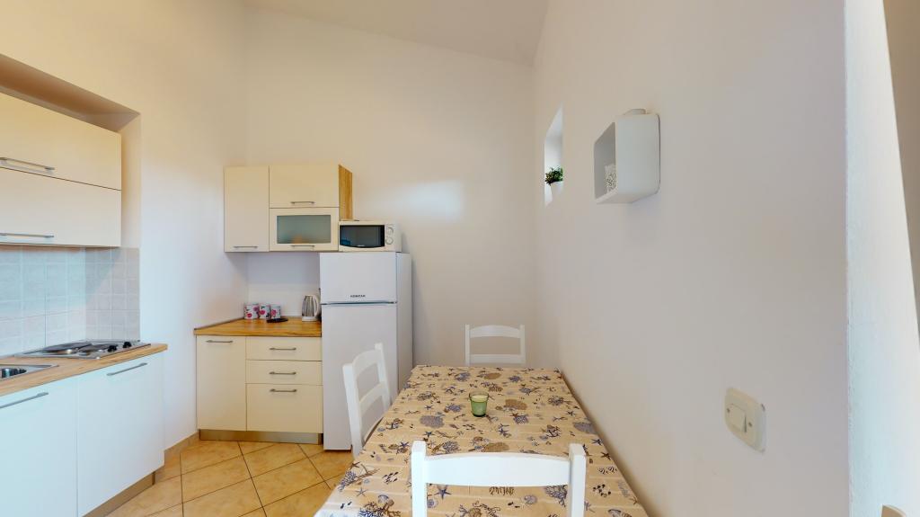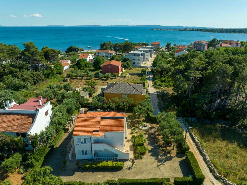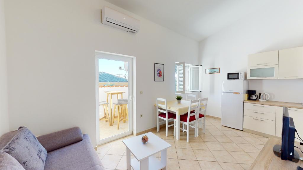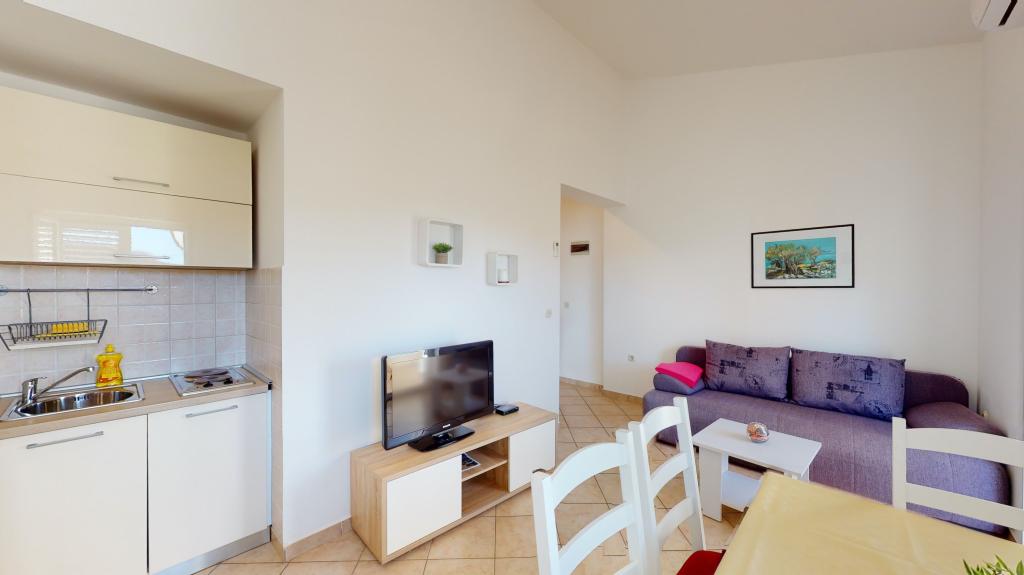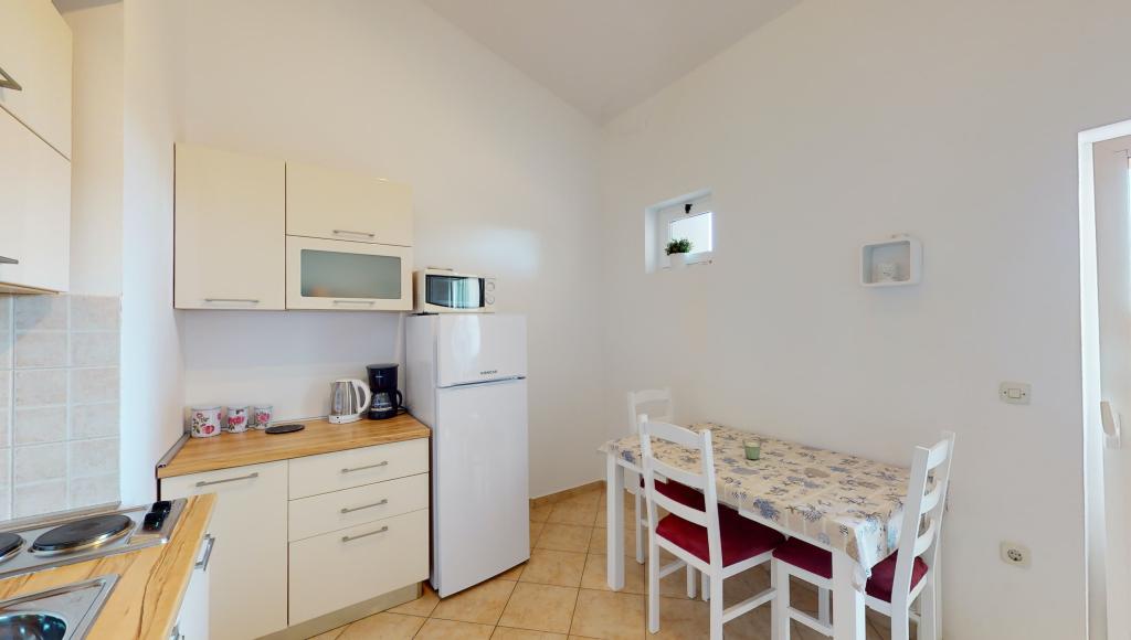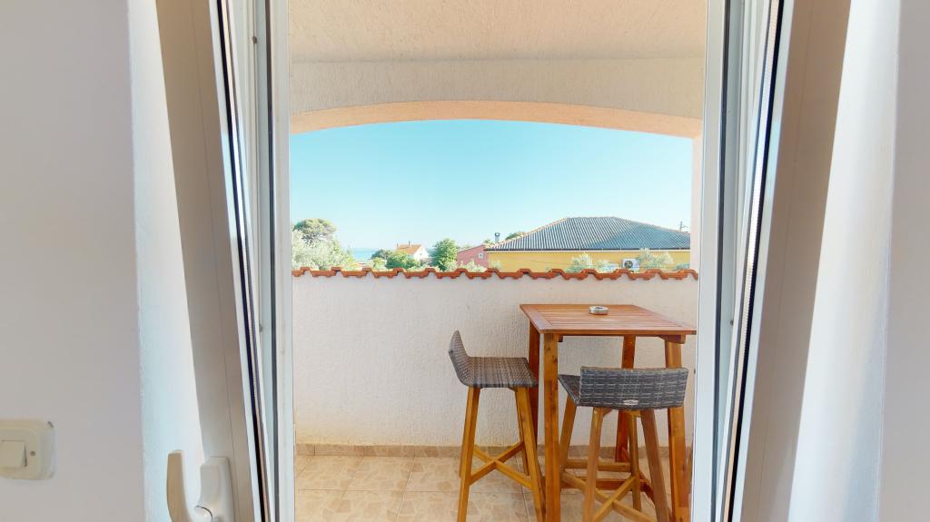 Apartmán 3 ***, v 1. patře s krásným výhledem na moře. Vše pro příjemný pobyt se nachází v okruhu 250 m: pláž, centrum města, supermarket, restaurace. Na dvoře je gril a další terasa obklopená zelení. Objekt se nachází v klidném prostředí.