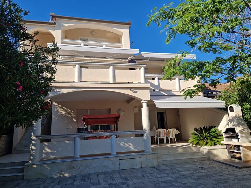 Pronajímám nově zrekonstruované a moderně zařízené apartmány v jižní, klidné části ostrova Vir. Nemovitost se nachází 5 minut chůze od pláže obklopené zelení, mimo hlavní silnici, která zajišťuje klidnou a pohodlnou dovolenou s rodinou a přáteli. Zařízení má 2 samostatné jednotky: 1. Apartmán 4 hvězdičky pro 6 osob (4 2) o ploše 75 m2 a terasa 27 m2. Byt zabírá celé 1. patro a má 2 ložnice se 3 a 2 lůžky, kuchyň s jídelnou, obývací pokoj (s pohovkou, která se změní na přistýlku) a 3 koupelny se sprchou. Z obývacího pokoje a kuchyně jsou 2 východy na velkou terasu. 2. Studio apartmán 3 hvězdy pro 4 osoby o rozloze 37 m2, který se nachází ve druhém patře. Má obývací pokoj s kuchyní a jídelním koutem, ložnici, koupelnu a krytou terasu. Z obývacího pokoje az terasy je krásný výhled na moře a okolí, což je ideální prostředí pro příjemnou dovolenou. Parkování před domem a venkovní sprcha.