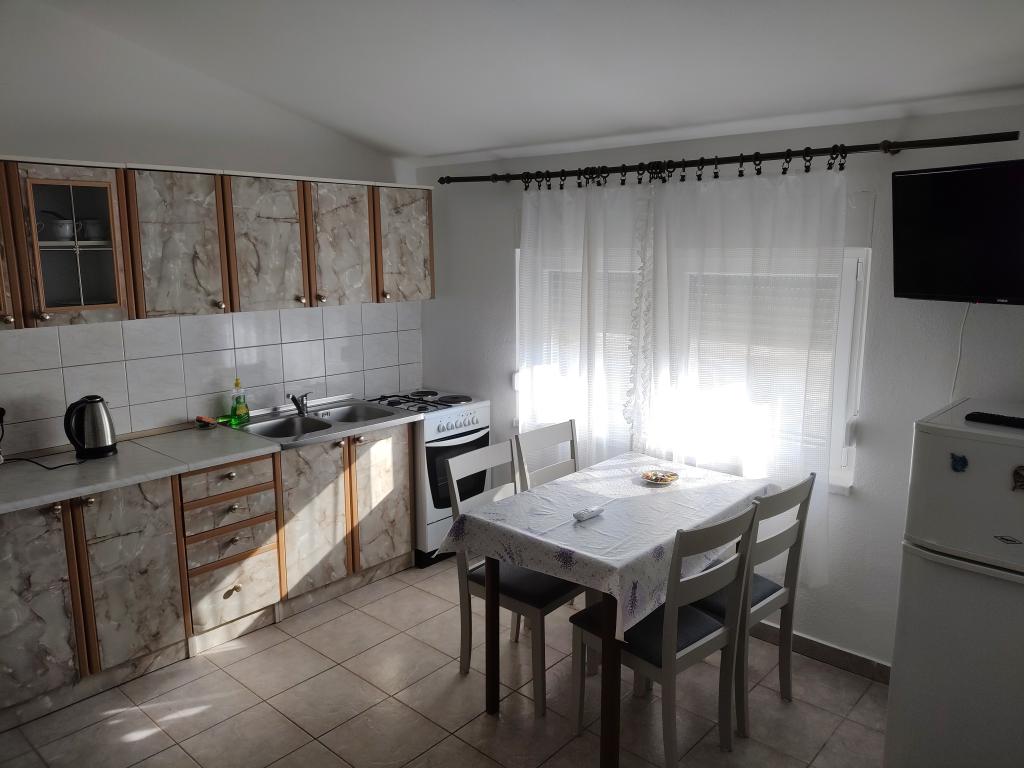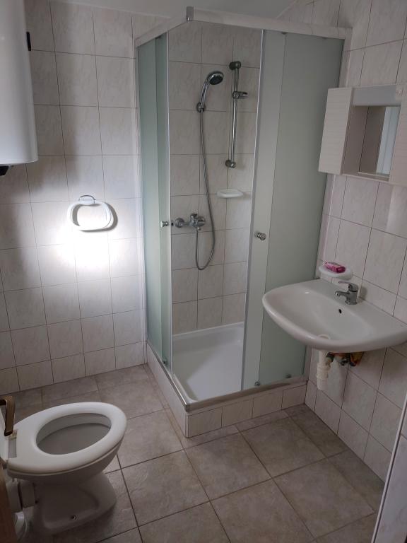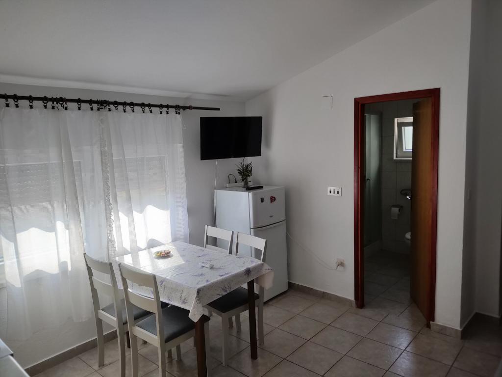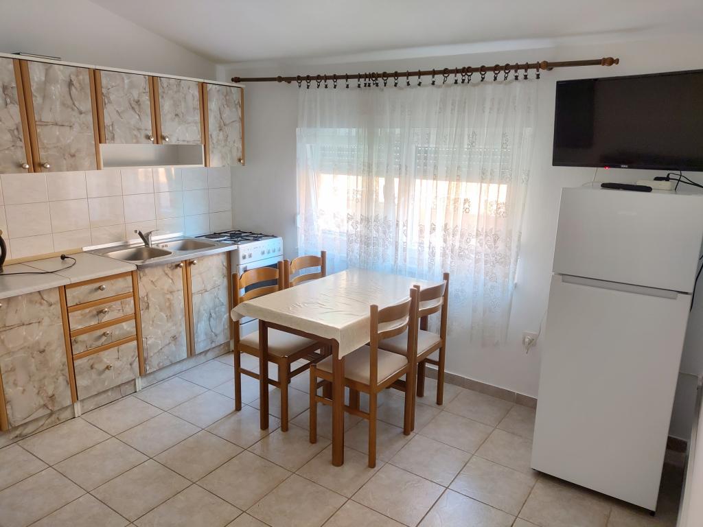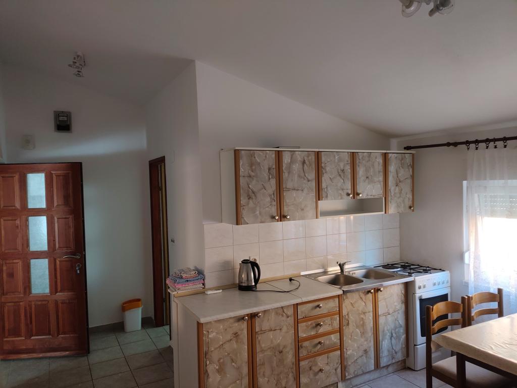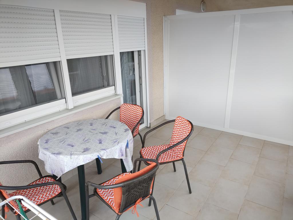 Pronajmu dvoupokojový byt A2+2, který se skládá z jedné velké ložnice, obývacího pokoje s kuchyní a jídelnou, koupelny a terasy. V ložnici je manželská postel s nočními stolky a šatní skříň na věci. Z pokoje je vstup na velkou terasu se stolem a židlemi. V obývacím pokoji je rozkládací postel pro dvě osoby, kuchyň s troubou, lednicí, dřezem a jídelna se stolem a židlemi. Koupelna se skládá ze sprchového koutu a toalety. Je zde možnost použití grilu na dřevěné uhlí. Před domem je zajištěno bezplatné parkování. Byt má vlastní krytou terasu, která je fyzicky oddělena příčkou. Klimatizace a pobytová taxa jsou zahrnuty v ceně.